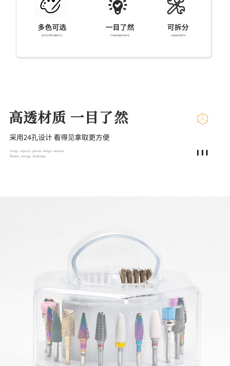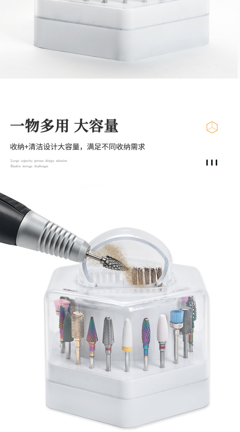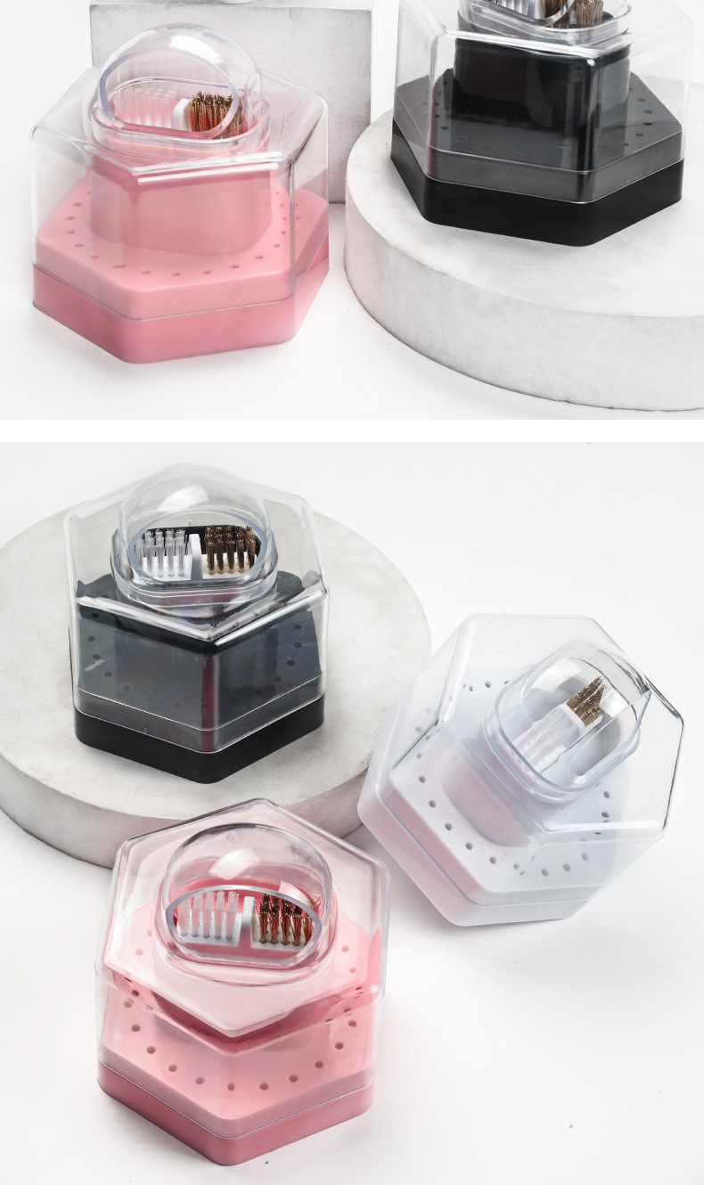 Caja de almacenamiento multifuncional de dos en uno de 24 agujeros para mostrar agujeros de almacenamiento de uñas limpias con caja de cepillo limpio