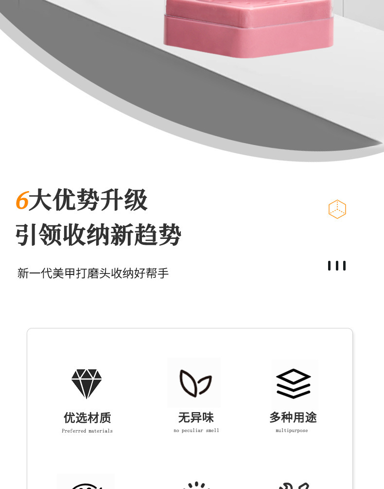 | Número de artículo | 6 lados para moler la cabeza y limpiar la Caja de almacenamiento |