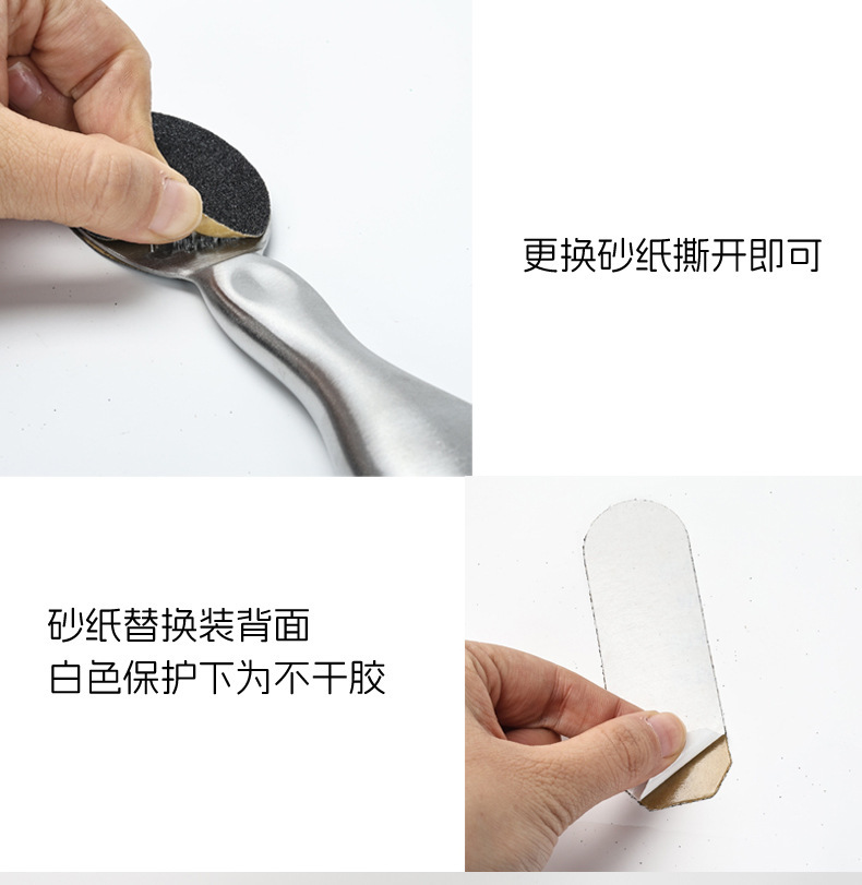 Cuidado de los pies, frotar la piel muerta, frotar los pies, eliminar los callos y la queratina, cepillar los pies de acero inoxidable, frotar los pies de doble cara, papel de lija de repuesto