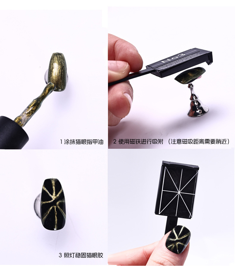 Arte de uñas de varios estilos, piedra de succión, ojo de gato, gato de amor, pegamento multifuncional, patrón de uñas de hierro, herramienta de imán al por mayor
