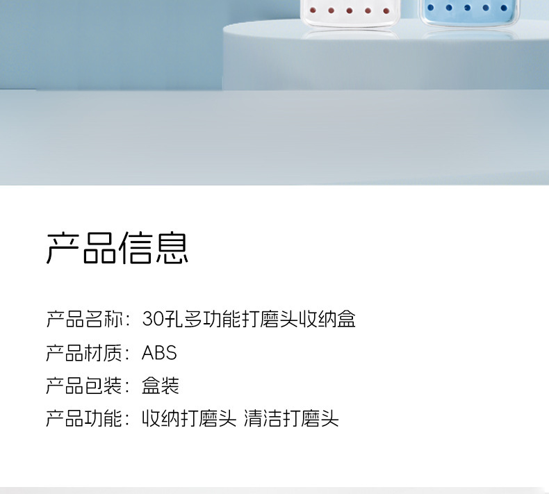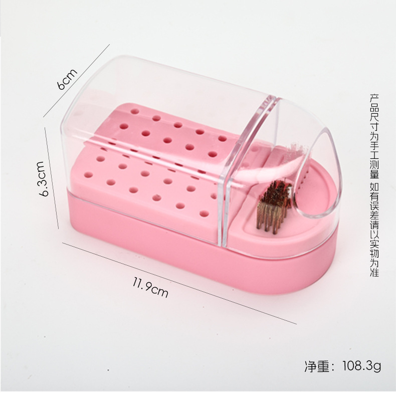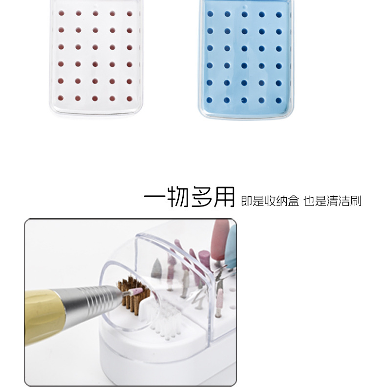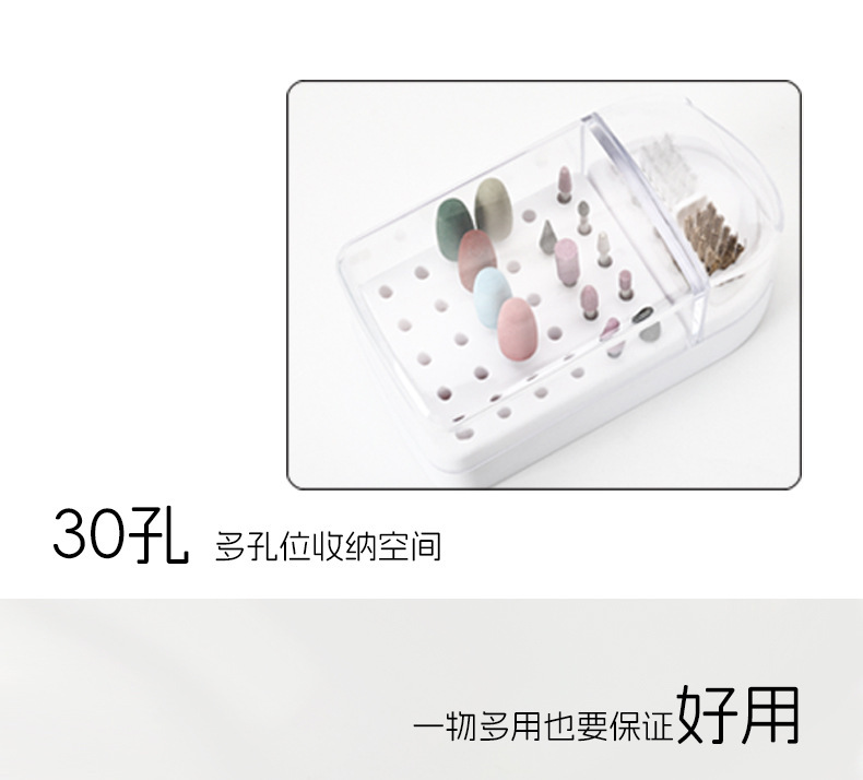 Cabezal de pulido de uñas, almacenamiento de limpieza, manicura dos en uno, diadema de pulido de 30 orificios, cepillo de limpieza, cabezal de pulido de uñas, caja de exhibición