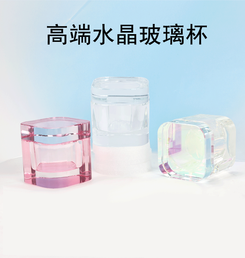 Nuevo tipo de alta calidad engrosado con tapa cuadrada taza de cristal anticolisión taza de lavado de lápiz de cristal líquido taza de manicuras