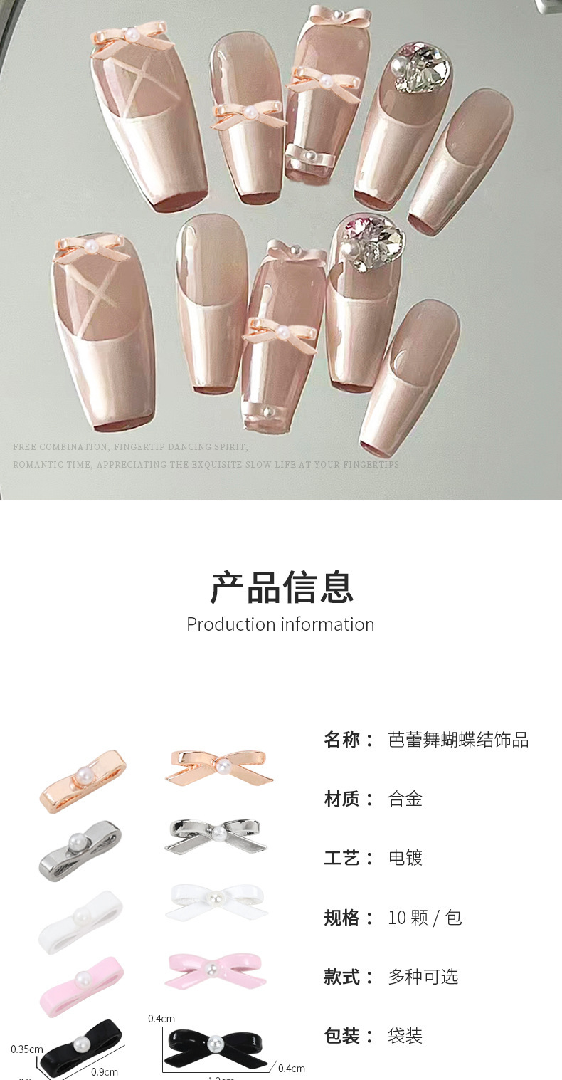 Pequeño libro rojo explosión zapatos de ballet arco flotante joyería de manicura corbata tridimensional 10 paquetes de aleación