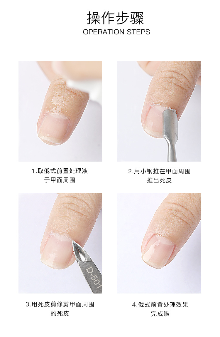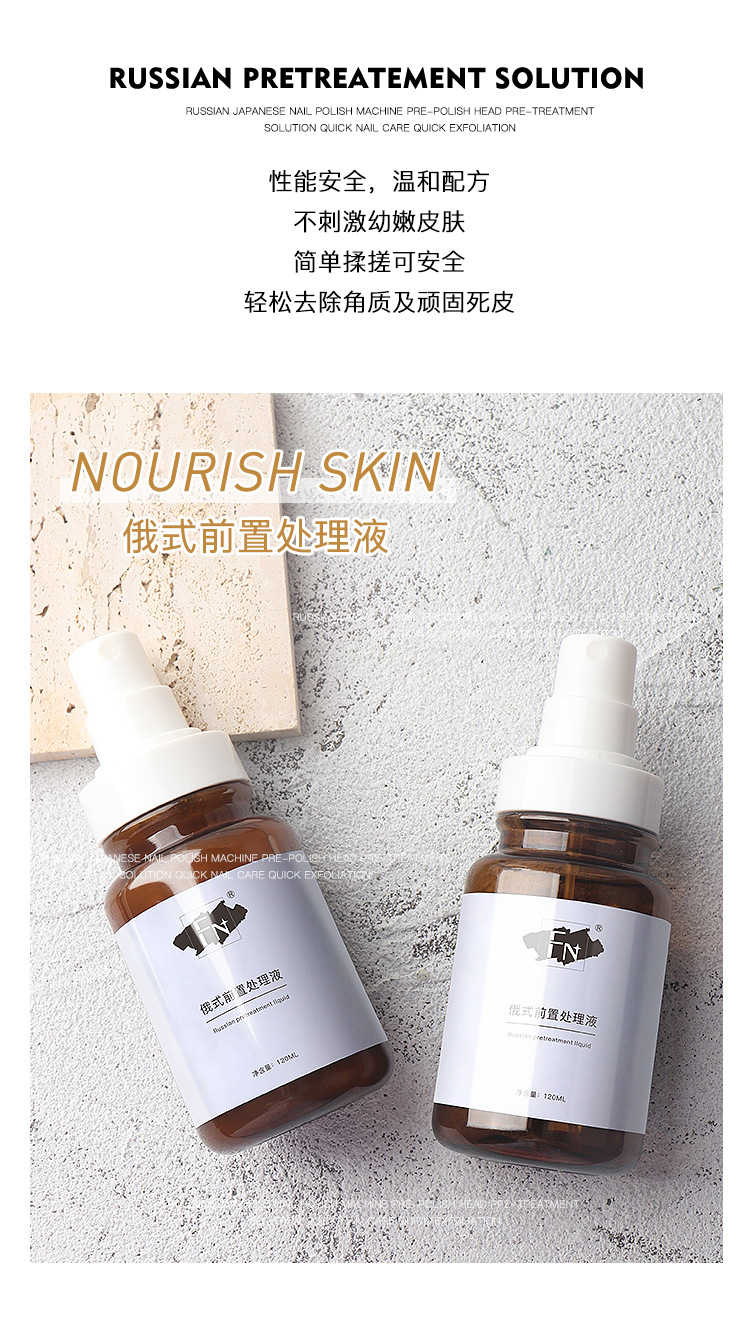 Uña rusa líquido de pretratamiento líquido de molienda de uñas líquido de pretratamiento líquido de eliminación rápida de la piel muerta cuidado de la piel suavizante líquido auxiliar