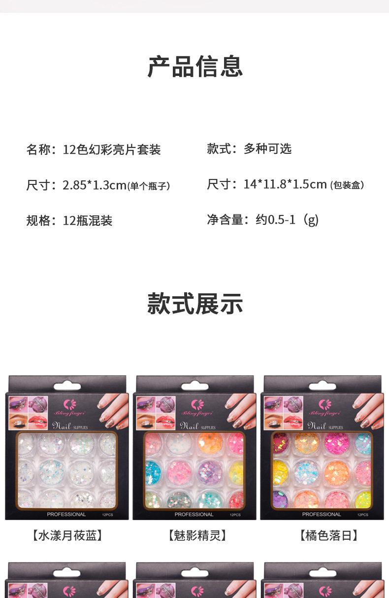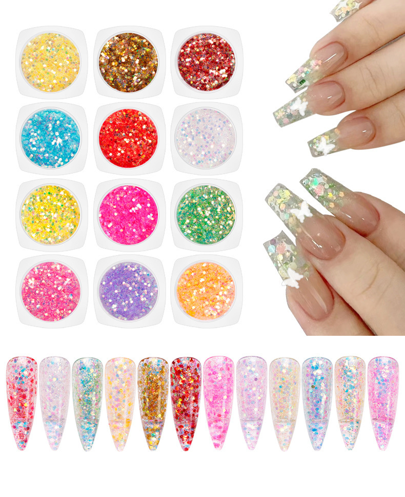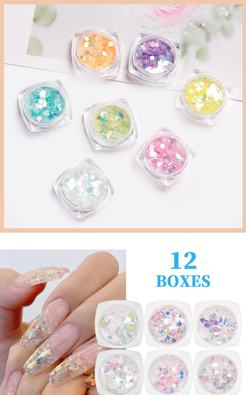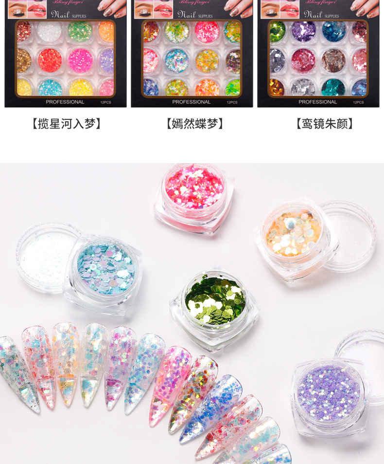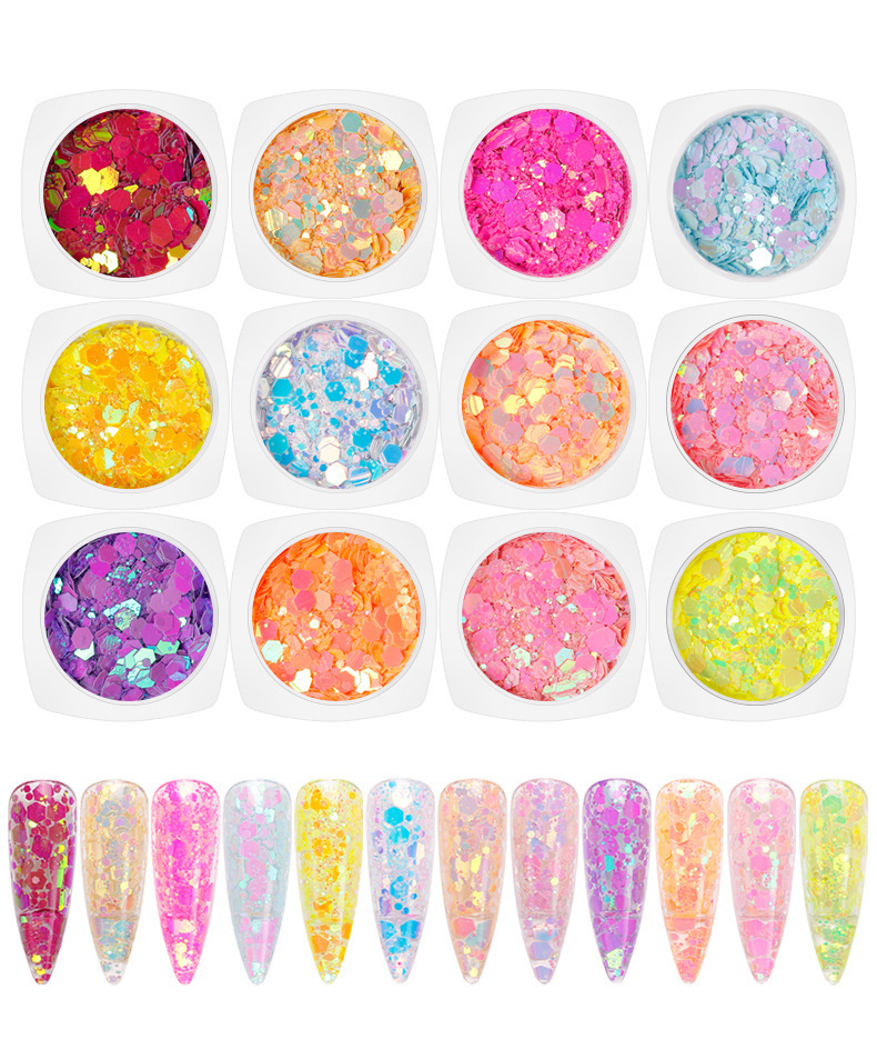 Internet celebridad nueva uñas lentejuelas de cristal 12 colores traje flash mezclado brillo lentejuelas DIY uñas adorno Decoración