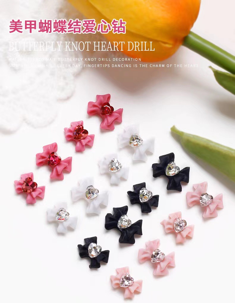 Celebridad en línea guerrero arco accesorios de uñas super flash todo partido tridimensional pila diamante amor accesorios de uñas al por mayor