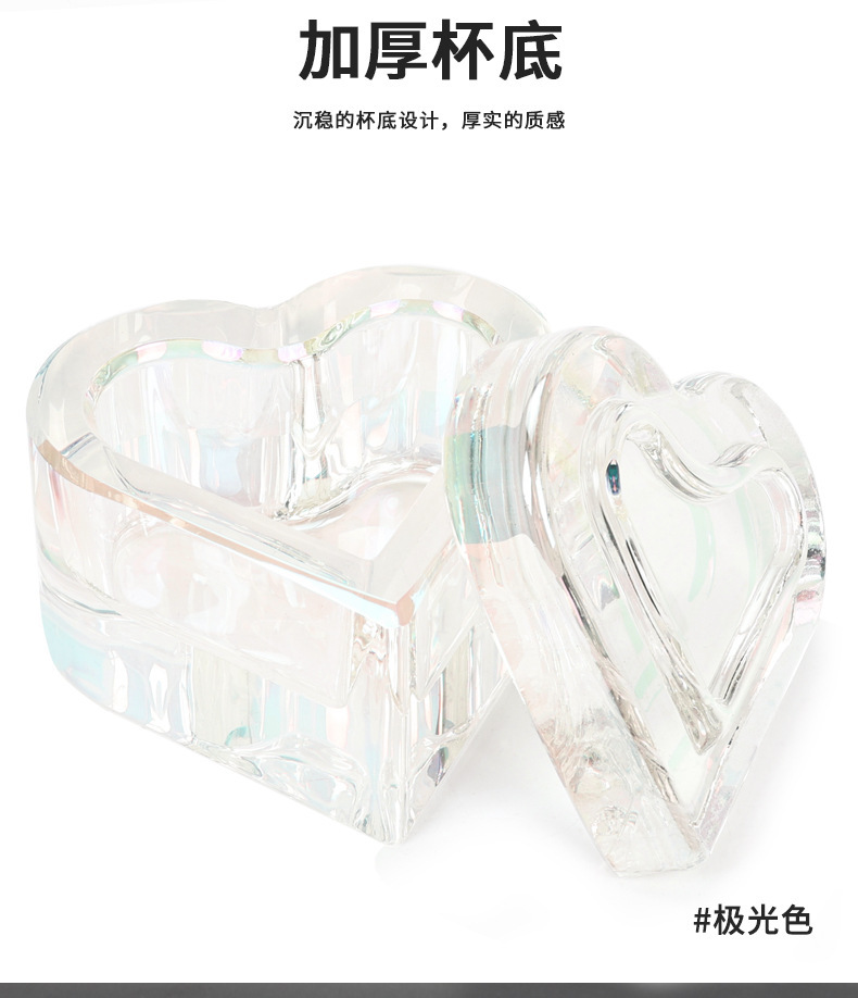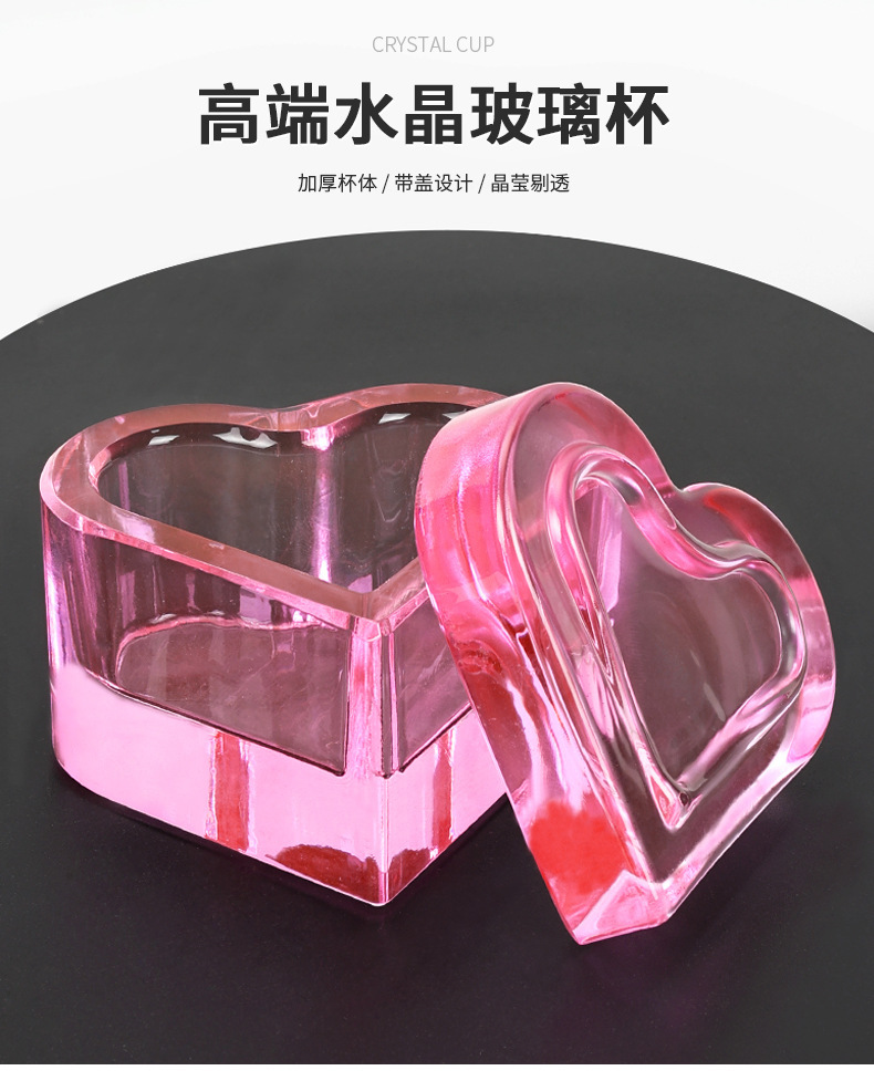 Nuevo tipo transfronterizo de alta calidad de manicuría con taza de cristal en forma de corazón cubierta taza de lavado de lápiz de cristal líquido manicuría taza de cristal