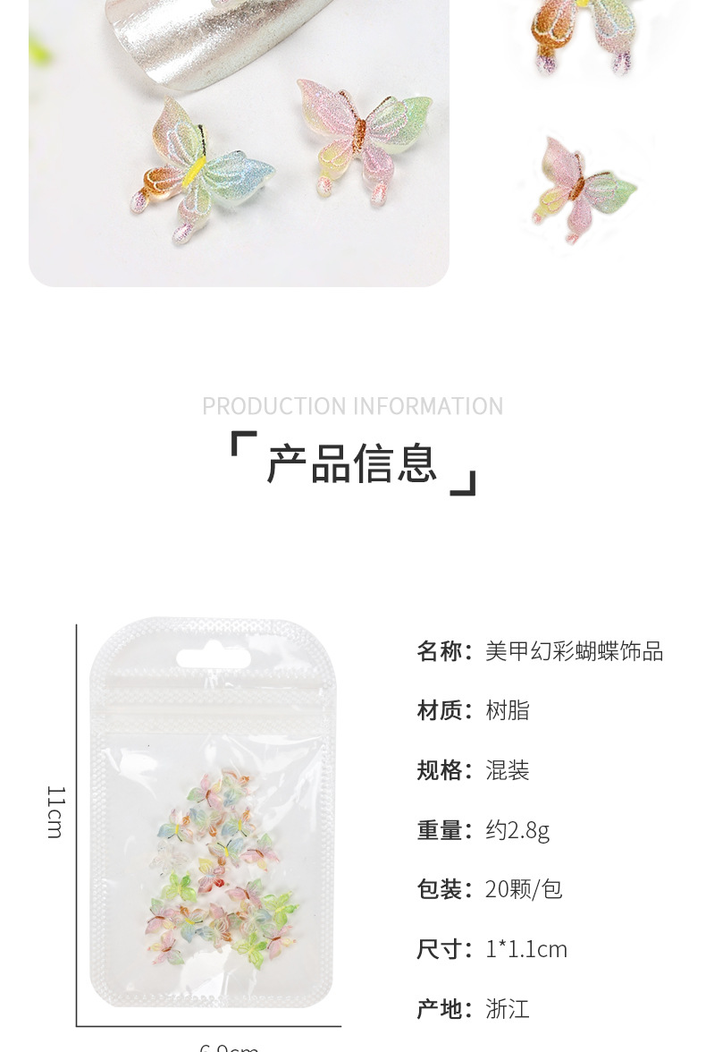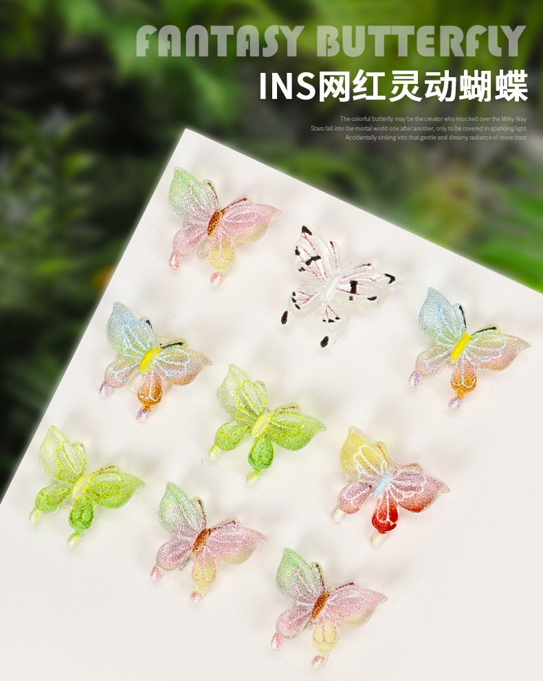 Manicure brillante hadas mariposa adornos de resina mariposa genio tridimensional manicure material de adornos de uñas 20 paquetes
