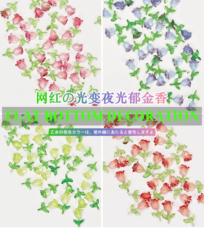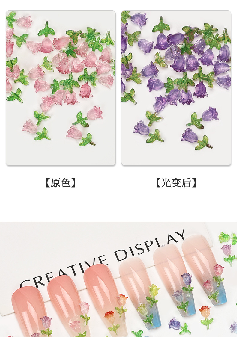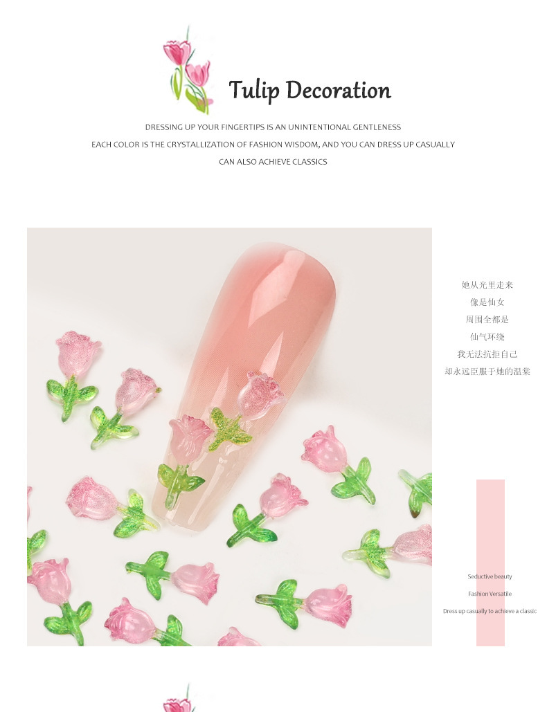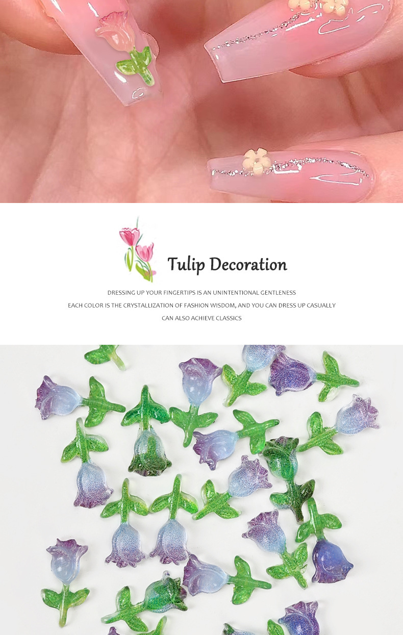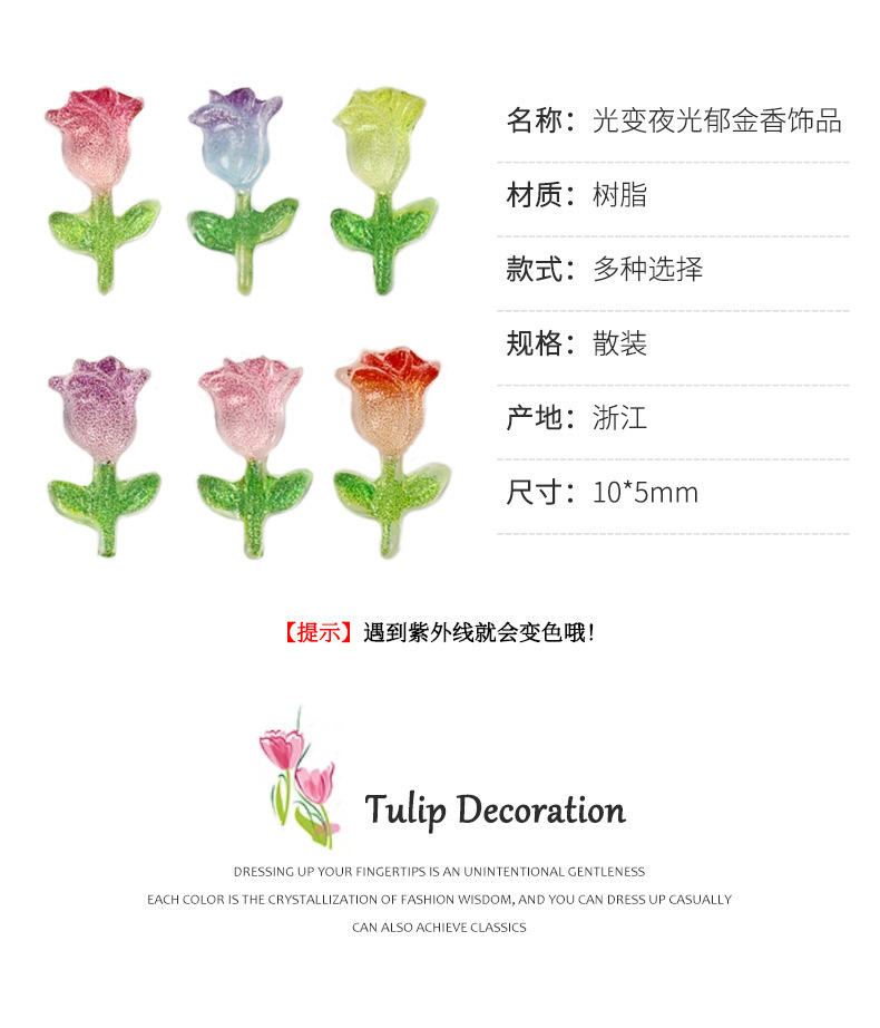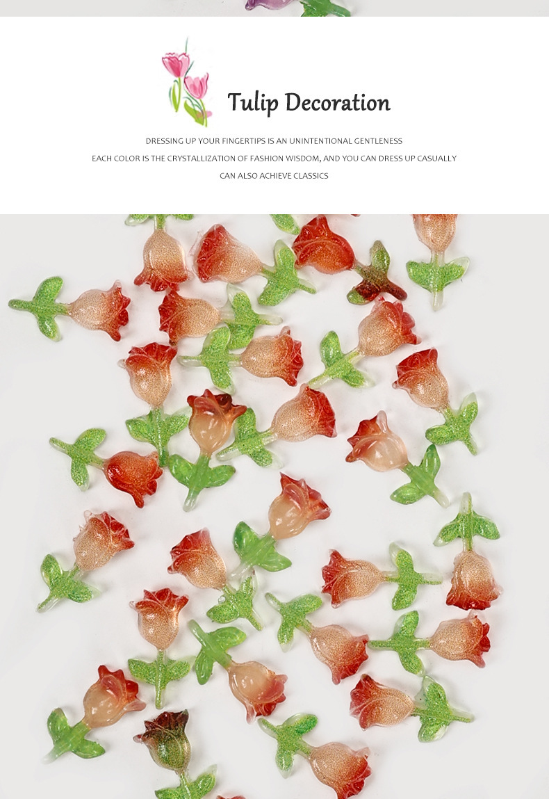 Red popularidad tulipán joyas de manicura luz nocturna tulipán resina tridimensional DIY accesorios de uñas