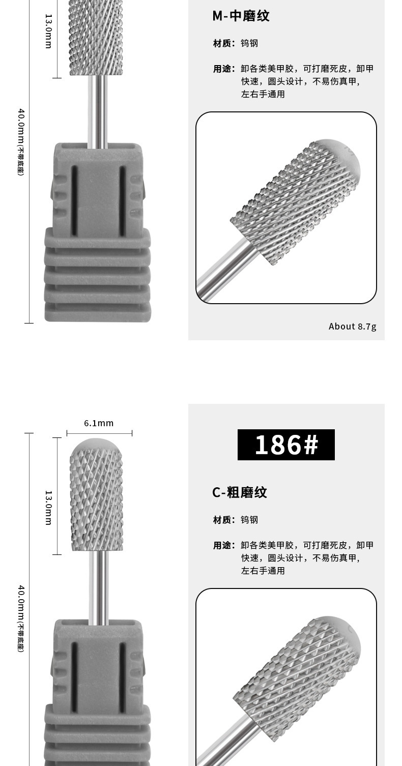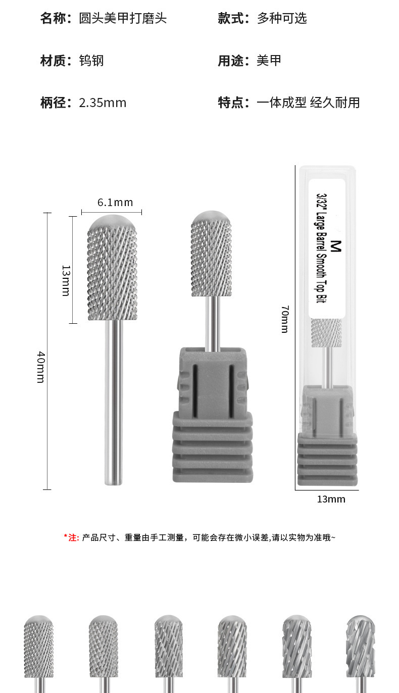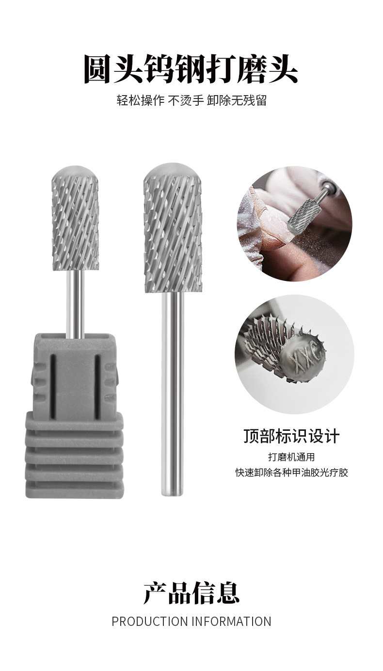 Nails transfronterizos de tungsteno de acero pulido Pro cabeza cilíndrica rápida eliminación de uñas pretratamiento eliminación de piel muerta eliminación de uñas bidireccional