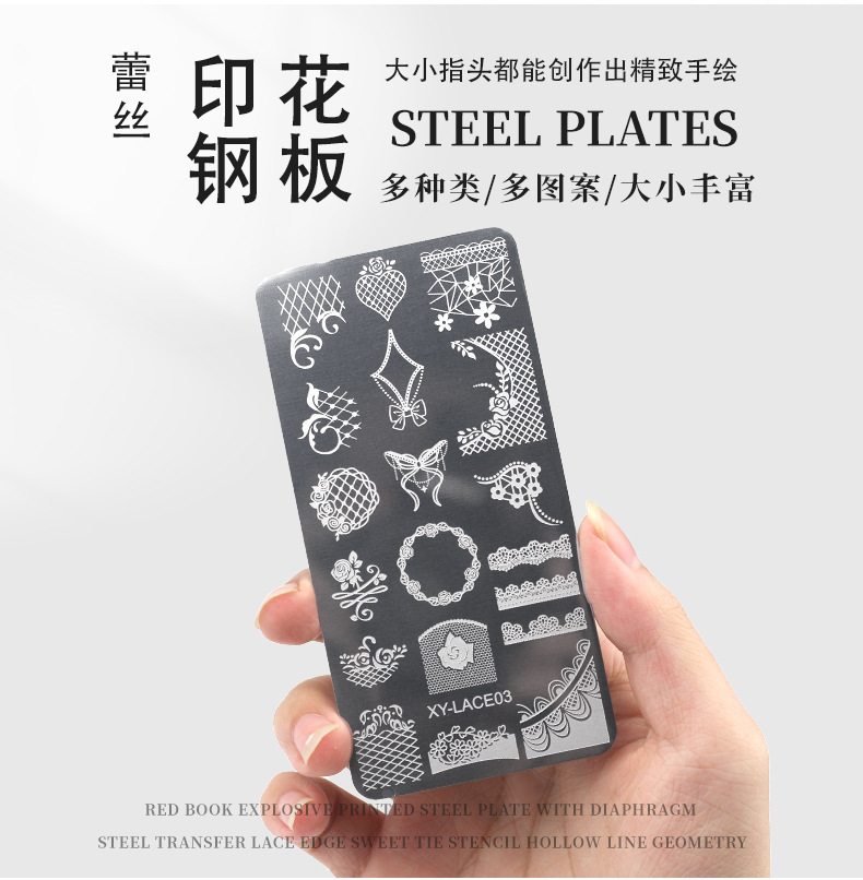 Impresión de acero de manicura con película azul de acero de encaje de transferencia de plantilla de impresión de encaje herramientas de manicura
