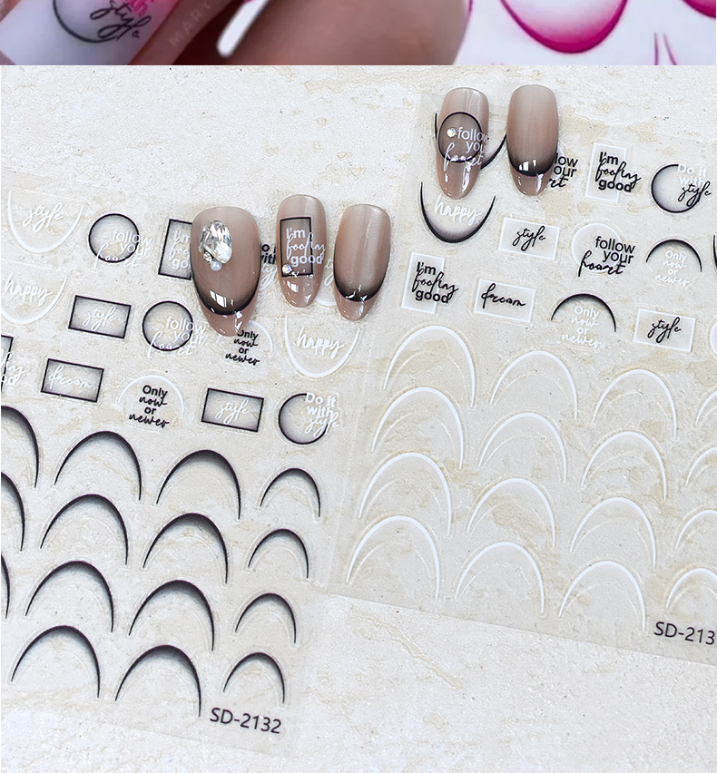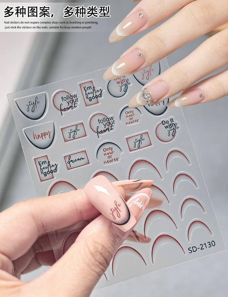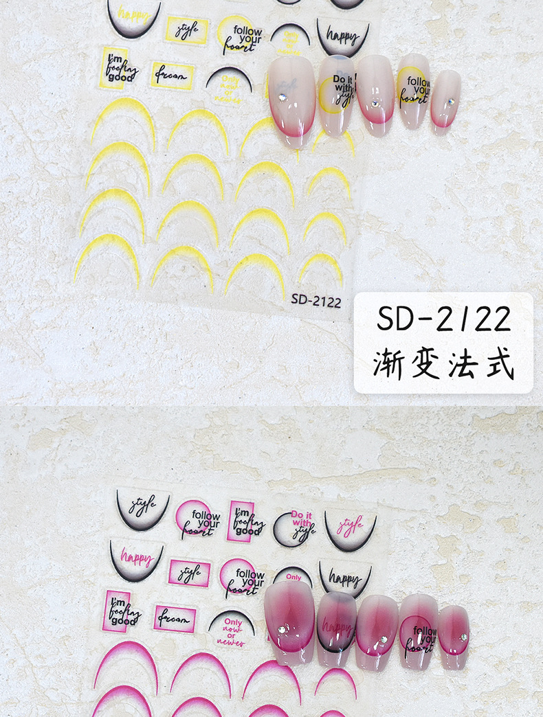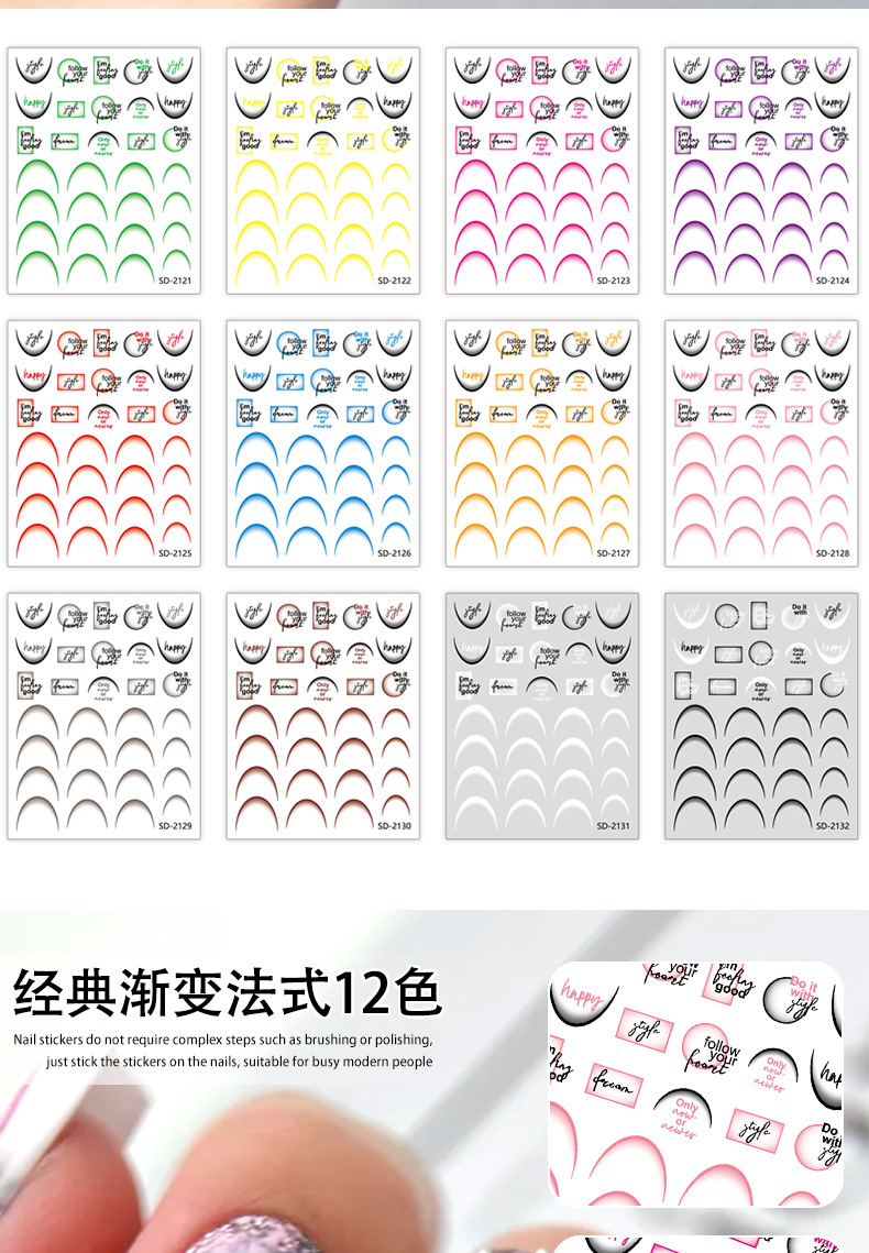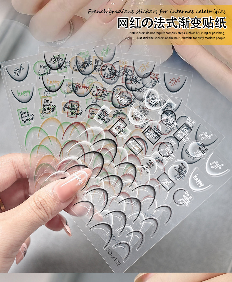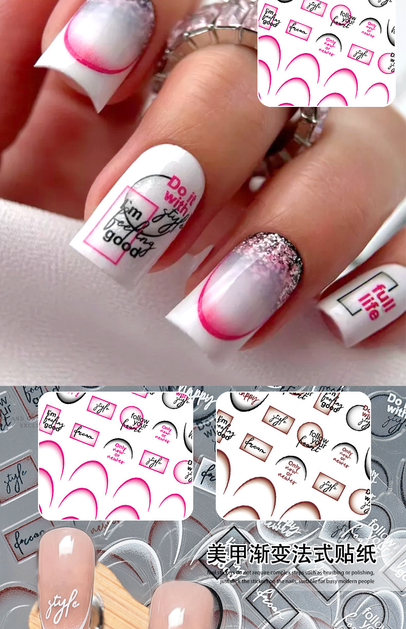 Uña francesa pegatinas huecadas rojas de uñas dibujo de pulverización plantilla de gradiente nuevo pegatinas de decoración sonrientes