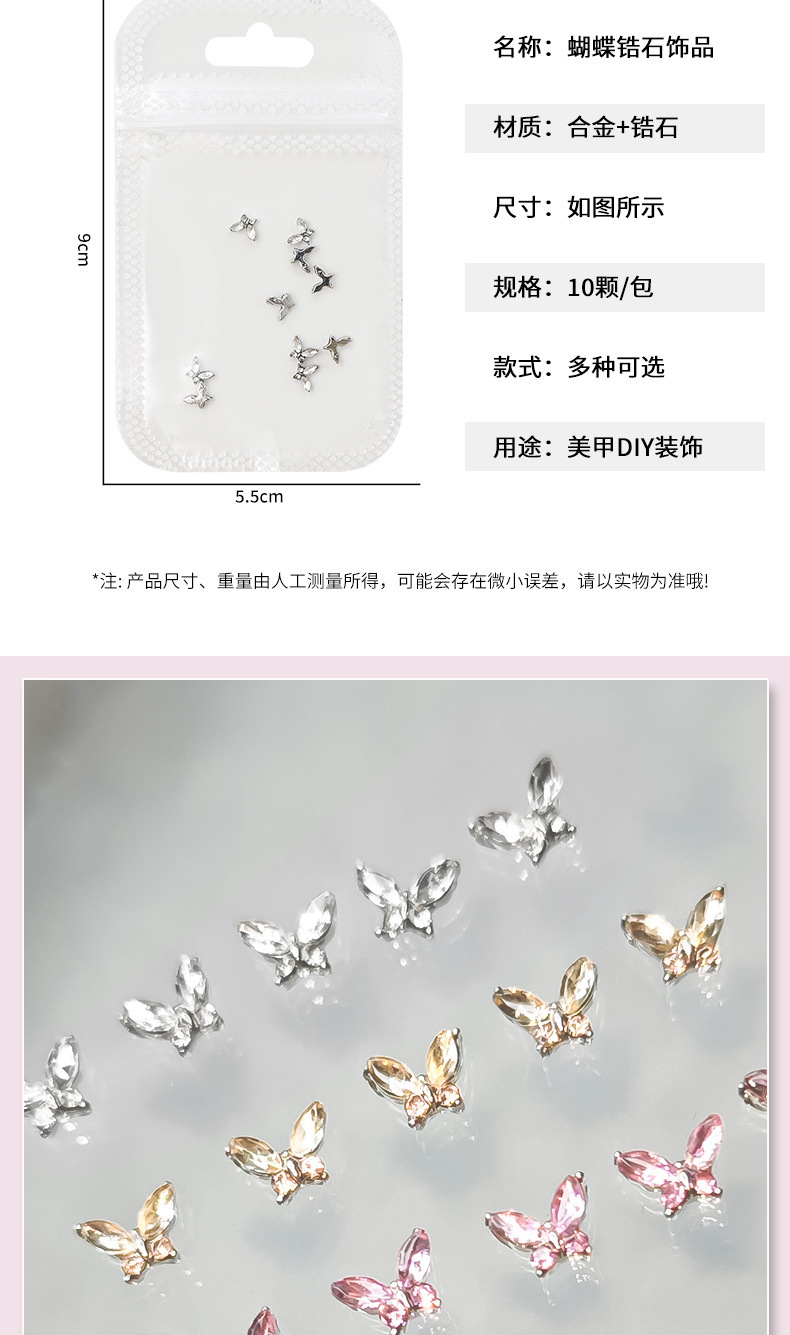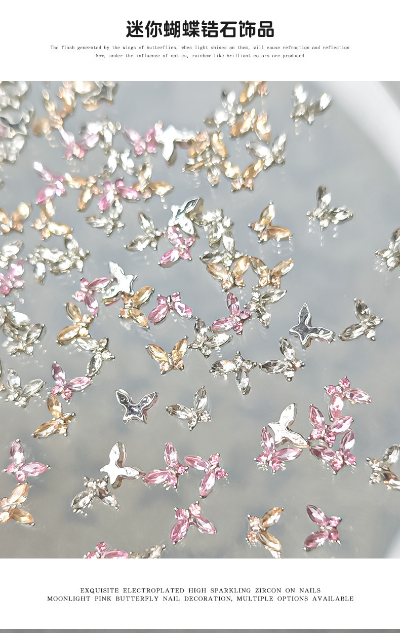 Manicure flash mini mariposa joyería aleación cristal zircón ultra brillante ojo de caballo accesorios taladro de uñas tridimensional al por mayor