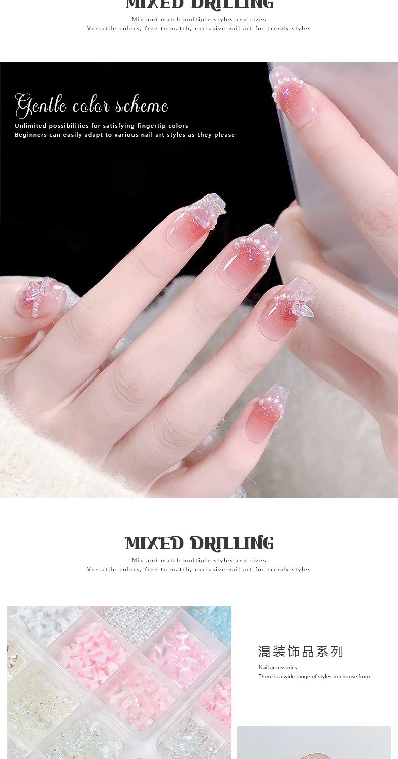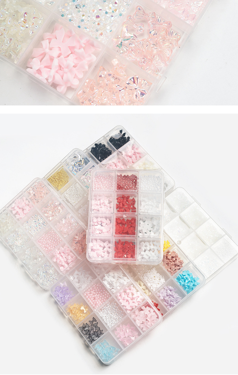 Explosión 3D aurora estereoscópica corbata de mariposa flores joyas de manicura resina roja red taladro plano accesorios de perlas semicirculares