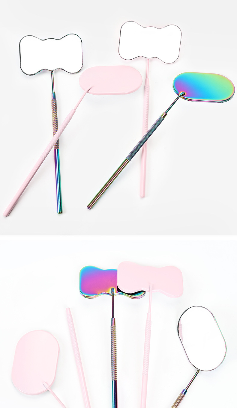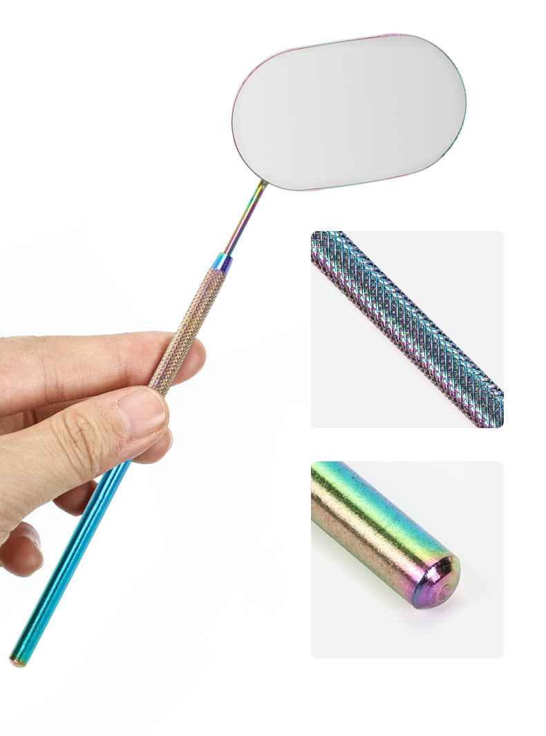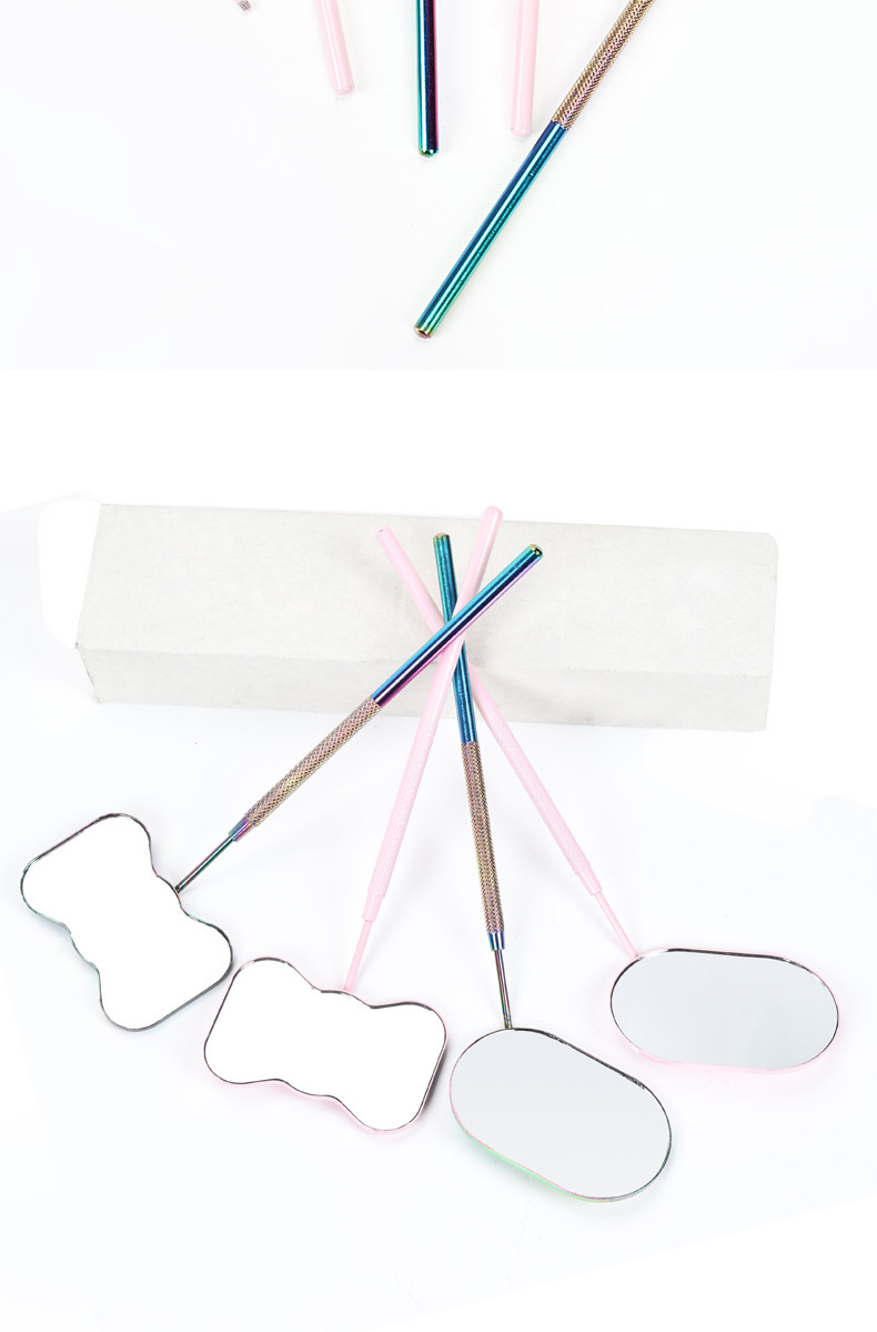 Cruz-frontera uñas belleza pestañas Acero inoxidable anti-niebla Oval injerto pestañas espejo belleza auxiliar pestañas herramientas de pestañas al por mayor