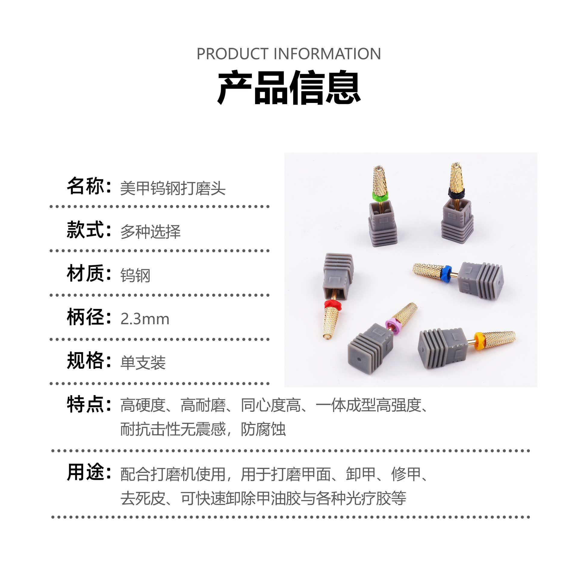 Transfronterizo de suministro directo de uñas de acero de tungsteno cabeza de molienda cinco en un diente cruzado de uñas rápido removedor de gel de piel muerta