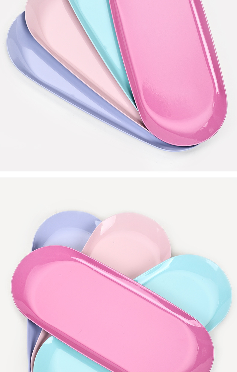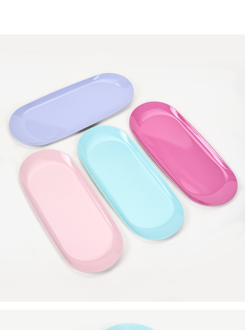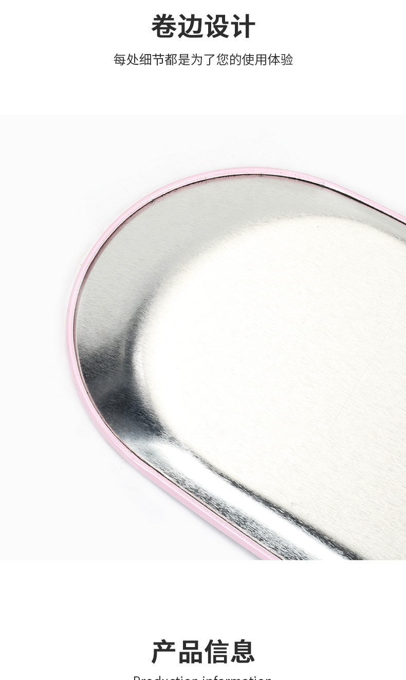 Coreano ins estilo bandeja de joyería de acero inoxidable bandeja de almacenamiento de herramientas de escritorio de manicura bandeja de metal ovalada