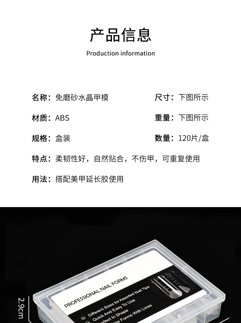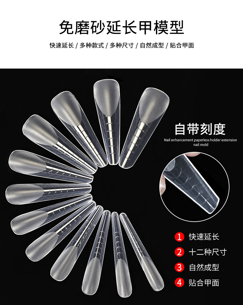 Transfronterizo nuevo molde de esmalte de uñas extensión de mano sin papel clavo de cristal semi-esmerilado 120 piezas de uñas con escala de uñas