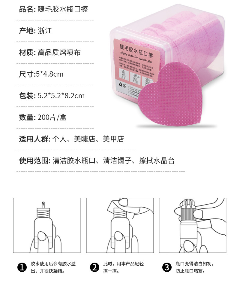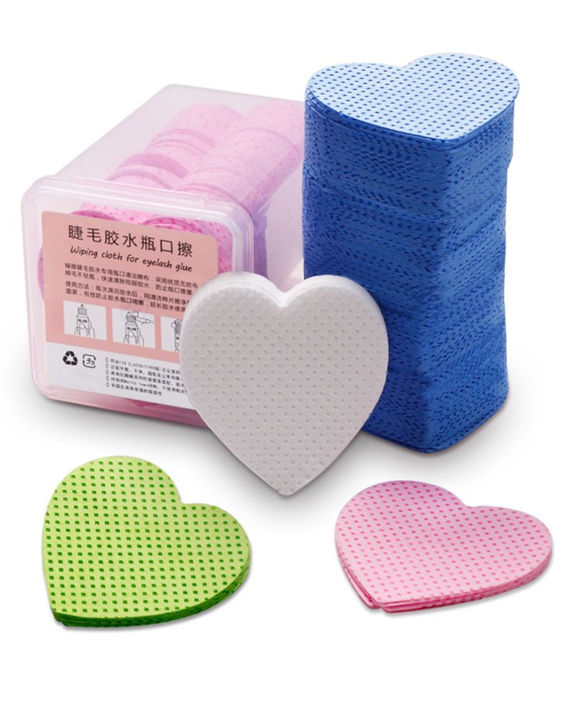 Transfronterizo nuevo pegamento de algodón mágico en forma de corazón Limpieza de pestañas pieza de algodón botella paño de limpieza de boca paño mágico en caja sin pelusa