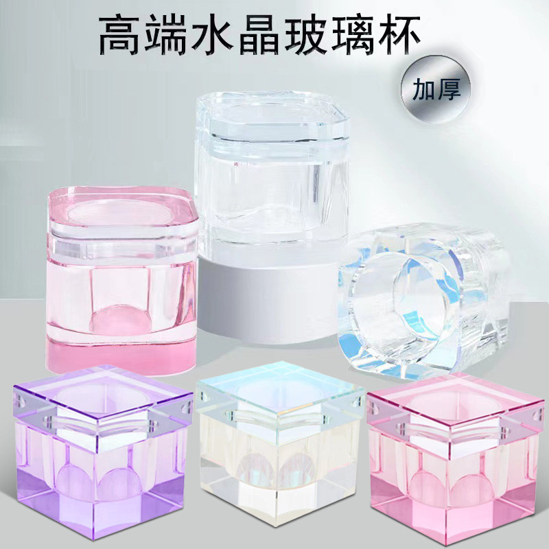 Nuevo arte de uñas de alta calidad transfronteriza con tapa cuadrada taza de cristal taza de lavado de la pluma Cristal líquido arte de uñas taza de cristal