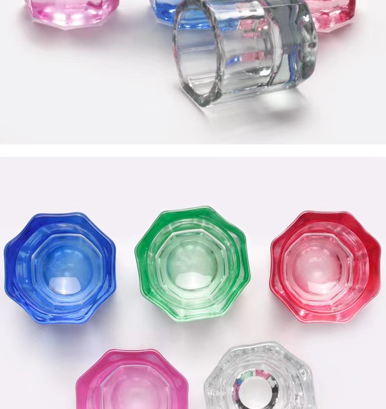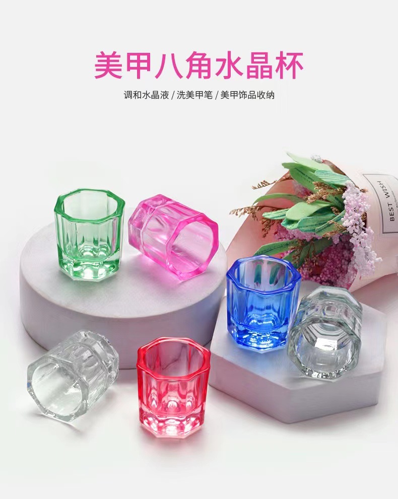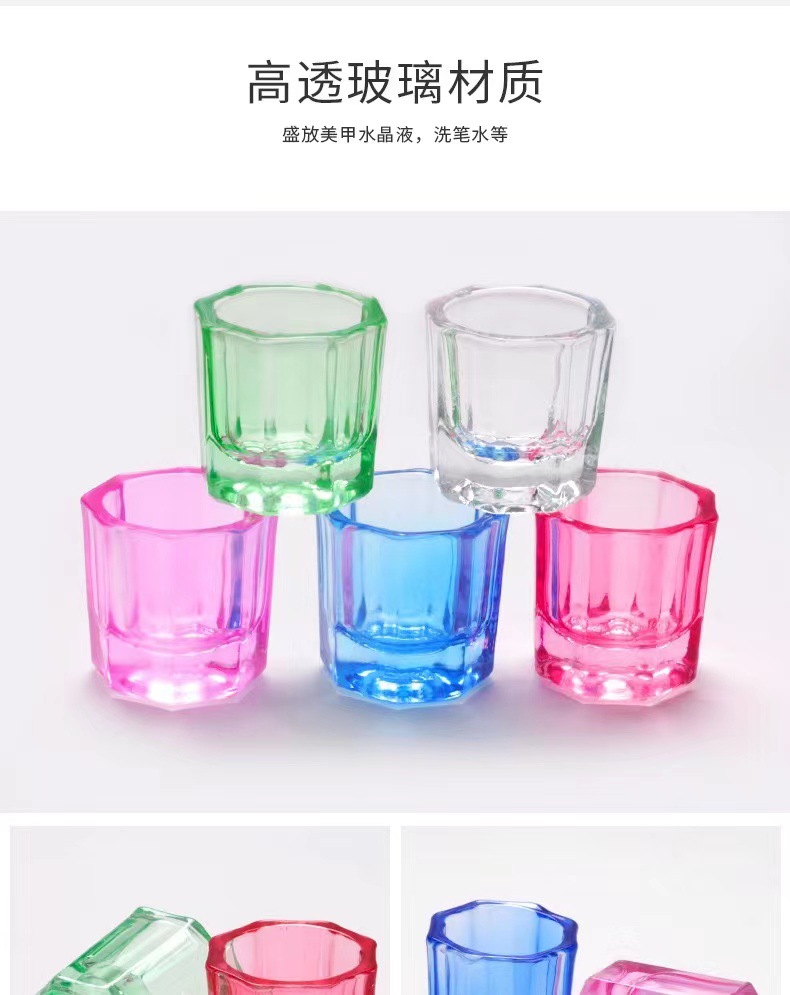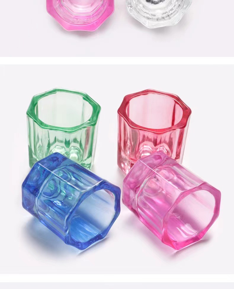 Suministro directo transfronterizo de color de uñas taza de cristal octogonal uñas de vidrio taza de mezcla de color especial taza de lavado de uñas taza de líquido