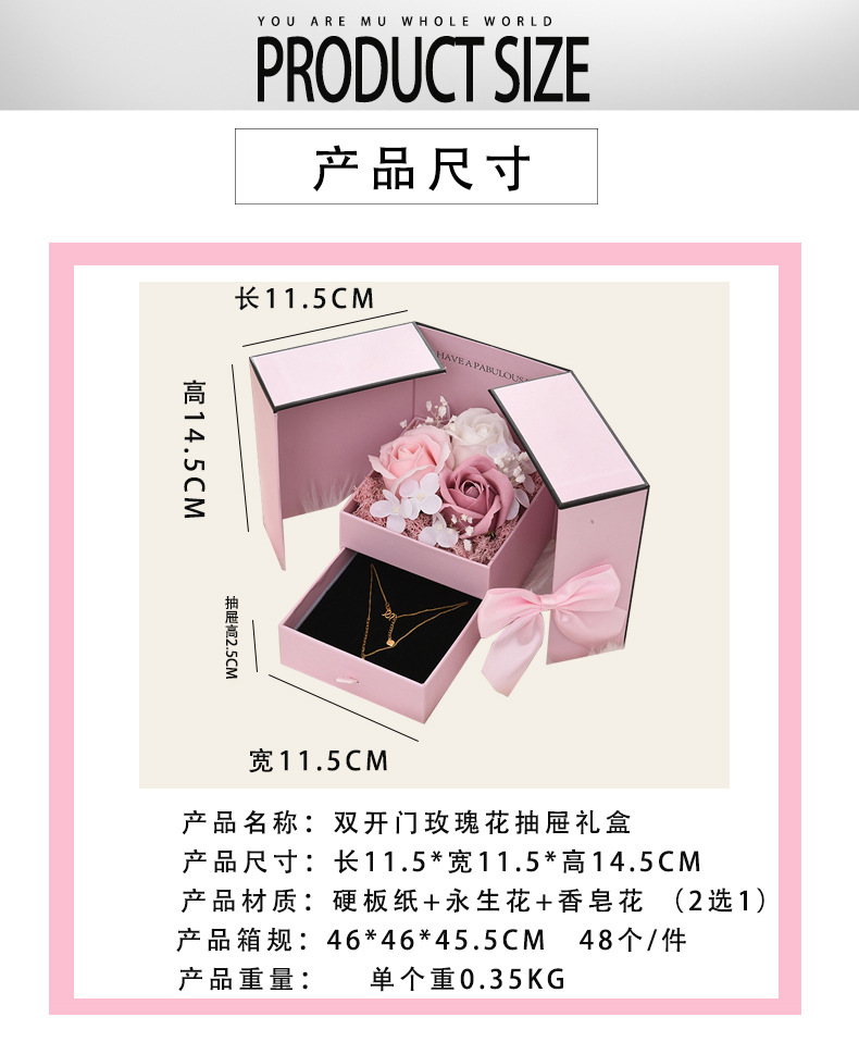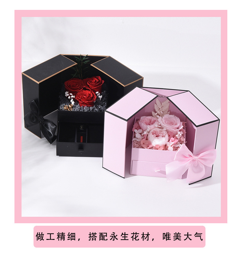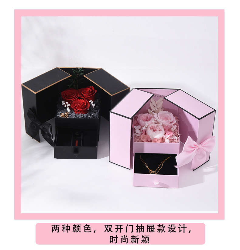 Día de San Valentín Inmortal Rose Joyas Caja de regalo Creativa de doble puerta Saponina Flor Lápiz labial Collar Caja de embalaje de regalo