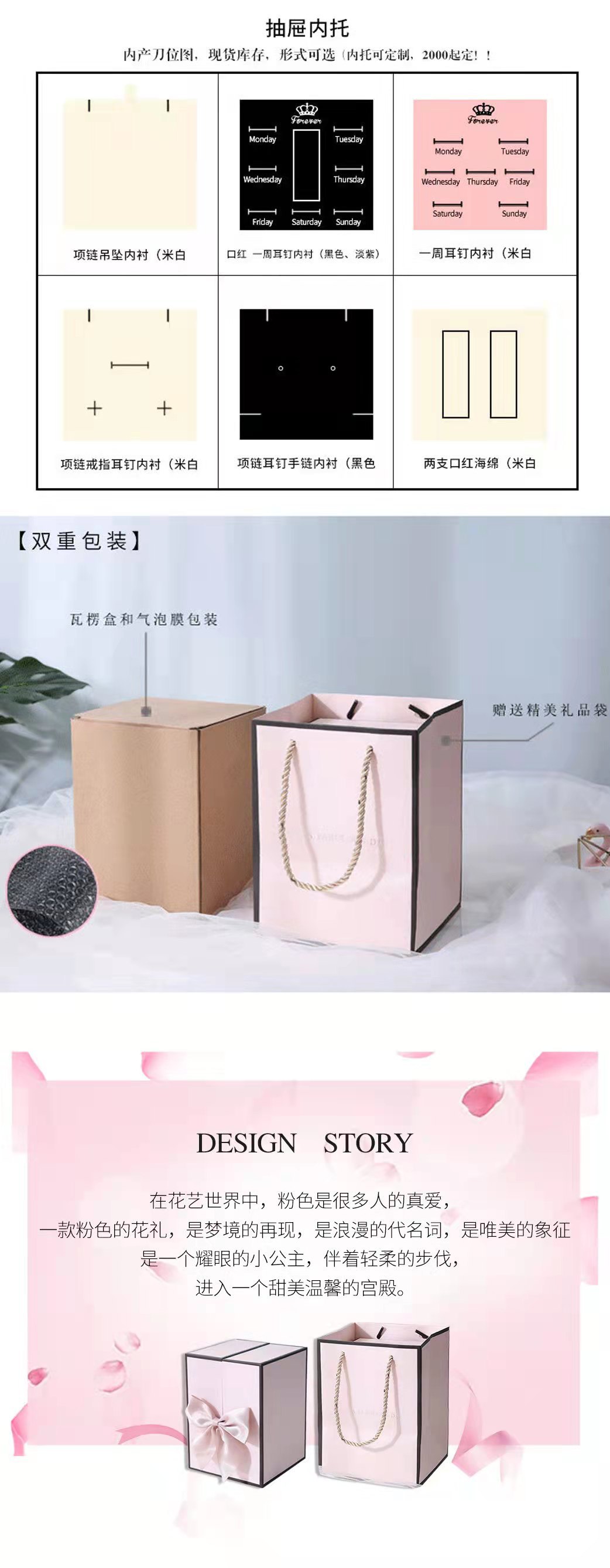 520 Regalo del Día de San Valentín caja de cajón de doble puerta caja de regalo de collar de flores de jabón rosa caja de regalo de flores eternas de ciervo
