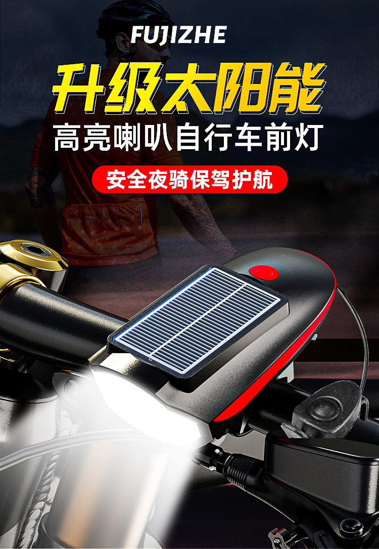 Solar 7588 luz de la bicicleta accesorios de bicicleta de montaña bicicleta de carretera Nuevo cuerno Luz de carga solar