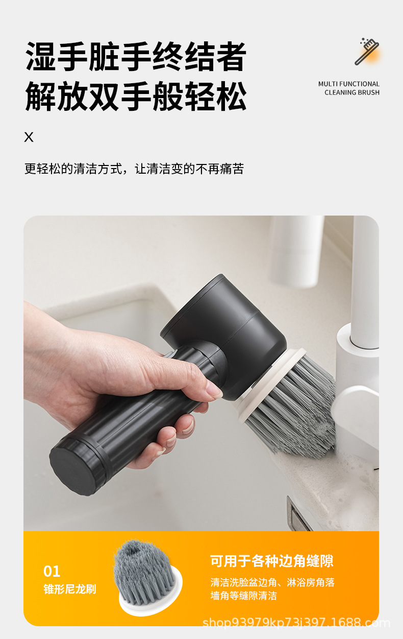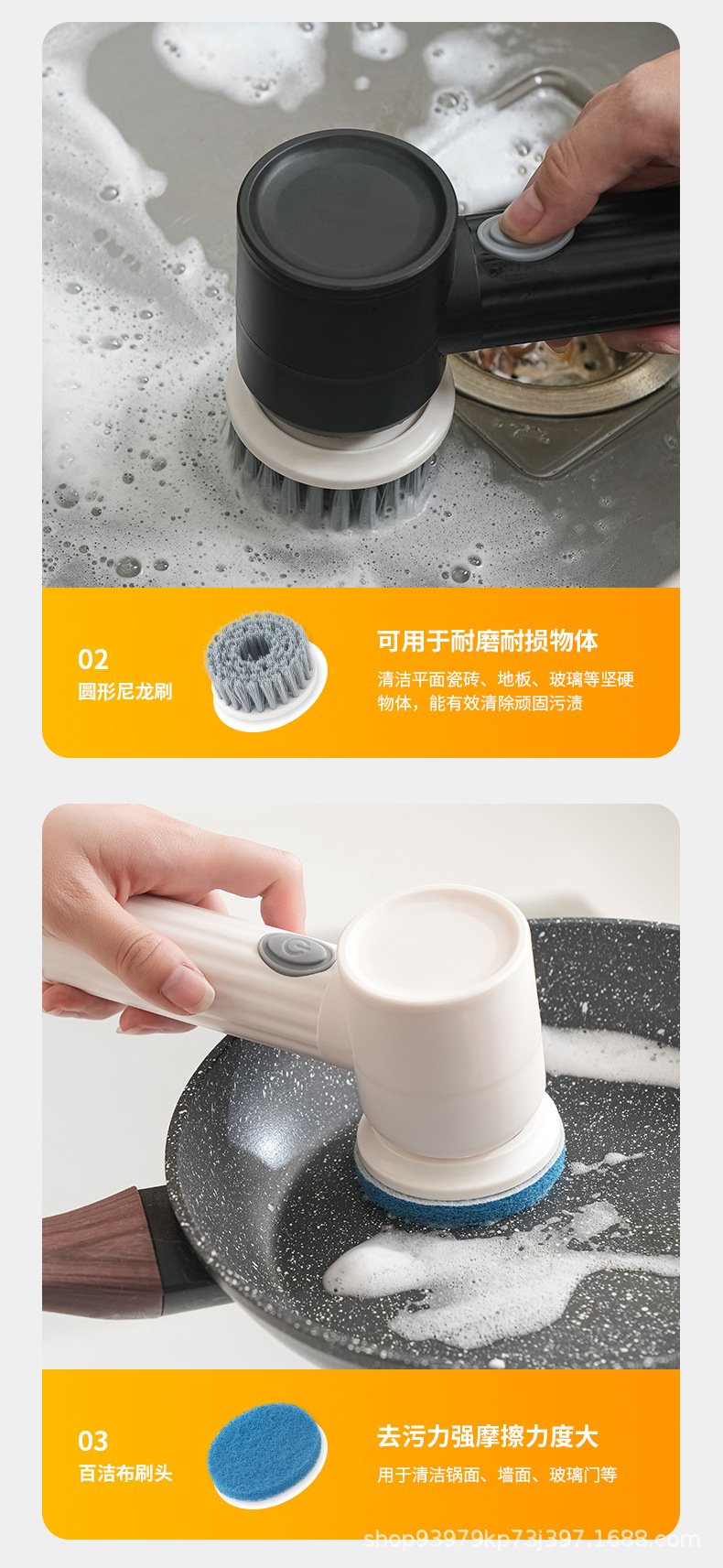 Cepillo de limpieza eléctrico, cocina recargable, cepillo de lavavajillas de mano para el hogar, cepillo de olla multifuncional para baño, estilo transfronterizo