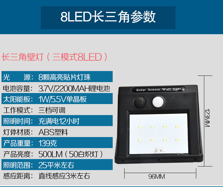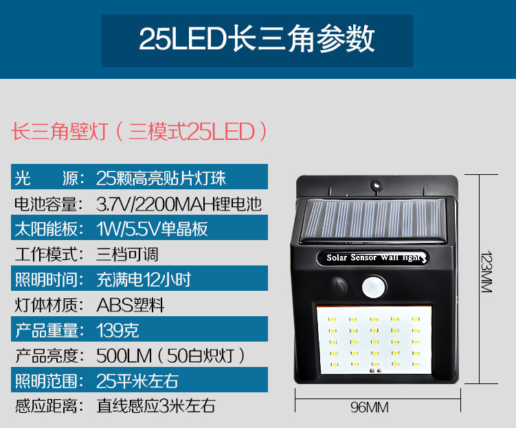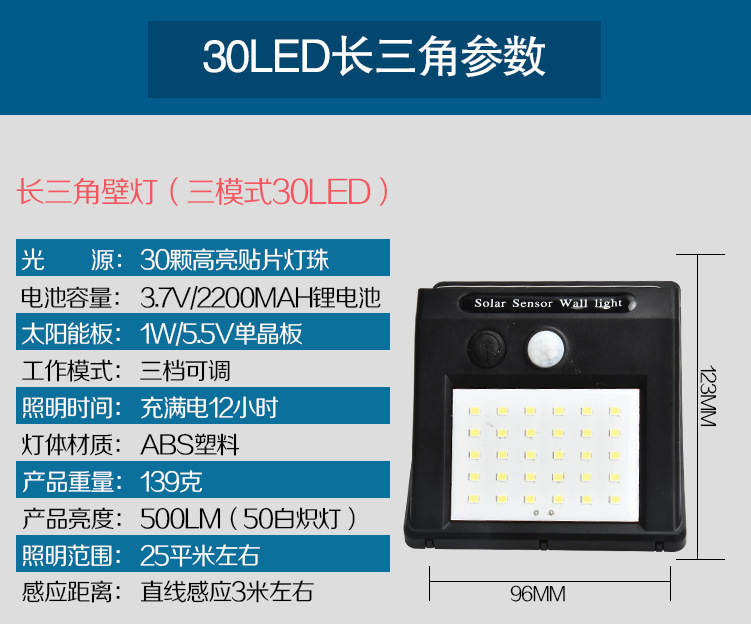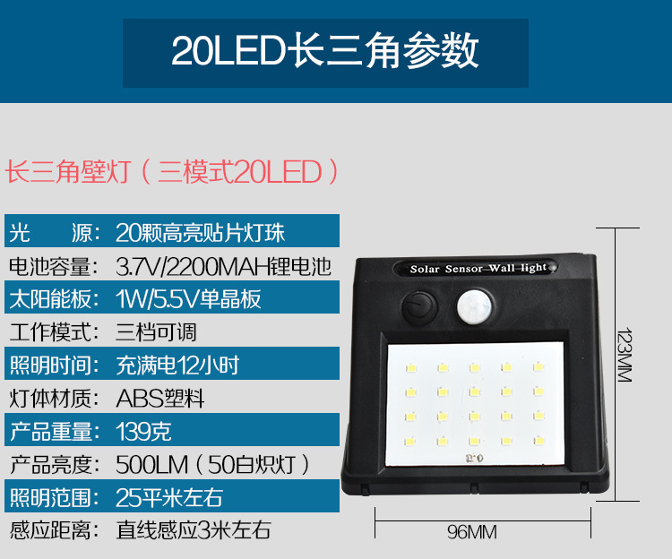 | Clasificación de la especificación | 20LED (persona caminando luz apagado, tipo),20LED (ligeramente brillante, estilo),20LDE (tres funciones, modelo),1828A (modelo 32LED, puede reemplazar la batería recargable por usted mismo),1828B (modelo, puede reemplazar la batería recargable por usted mismo),1626A (la gente se apaga la luz, la gente se vuelve ligeramente brillante, función dual, botón),1626B (la gente se apaga la luz, la gente se vuelve ligeramente brillante, doble función, botón),30LED (persona caminando luz apagado, tipo),30led (ligeramente brillante, estilo),30LED (tres funciones, modelo),Lámpara de pared dividida 30LED (3 funciones),48COB,48COB (tres funciones, modelo),78LED (tres funciones),130COB (tres funciones),56LED (tres funciones),108COB (tres funciones),90LED (tres funciones),90LED (tres funciones con control remoto),118LED (tres funciones),118led (tres funciones con control remoto),180COB (tres funciones),180COB (tres funciones con control remoto),Modelo pequeño 100LED (tres funciones con protección),100LED modelo grande (tres funciones con protección),120COB split lámpara de pared (gente caminando luz apagado),56led lámpara de pared dividida (gente caminando luz apagado),100led lámpara de pared dividida (gente caminando luz apagado),Lados 44LED tres (tres funciones),64LED tres lados (tres funciones),Lámpara de pared solar 42LED (tres funciones),Lámpara de pared solar 68COB (tres funciones),Lámpara de pared solar 90COB (tres funciones),Interruptor trasero 40LED (tres funciones) |