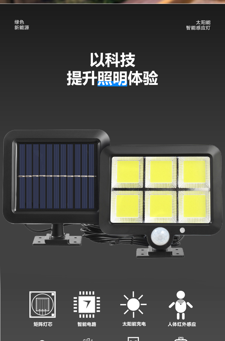 Nueva lámpara solar para exteriores, cuerpo humano doméstico, luz de calle impermeable automática, foco de iluminación, lámpara de pared de jardín súper brillante