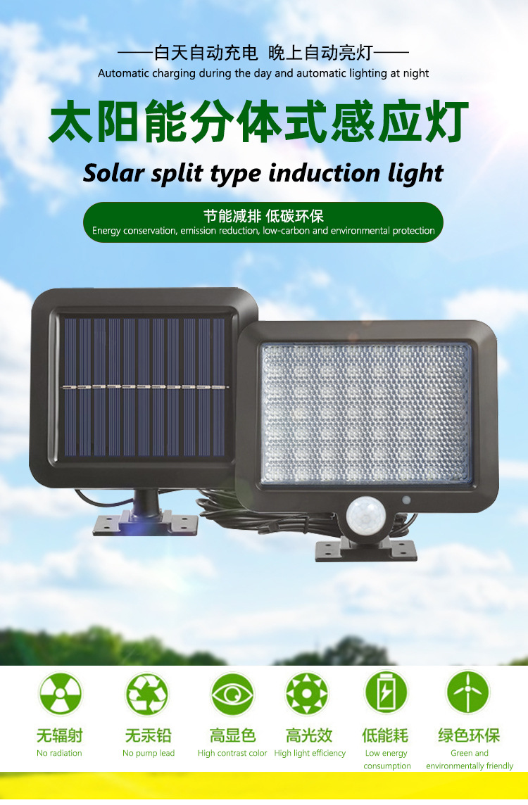 Luces solares, luces de inducción del cuerpo humano a prueba de agua, pasillos de balcón, luz de jardín rural, luz de jardín, exterior dividida