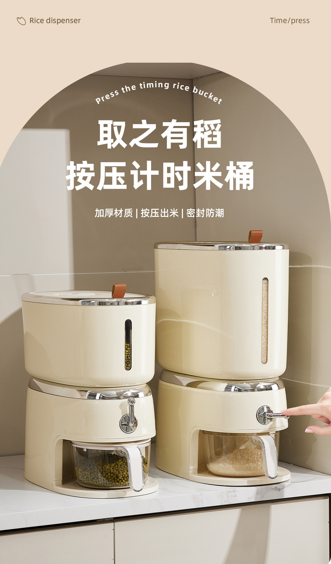 Cubo de arroz, hogar, a prueba de insectos, a prueba de humedad, sellado, prensa giratoria, cilindro de arroz, cubo de fideos, arroz de grano de grado alimenticio