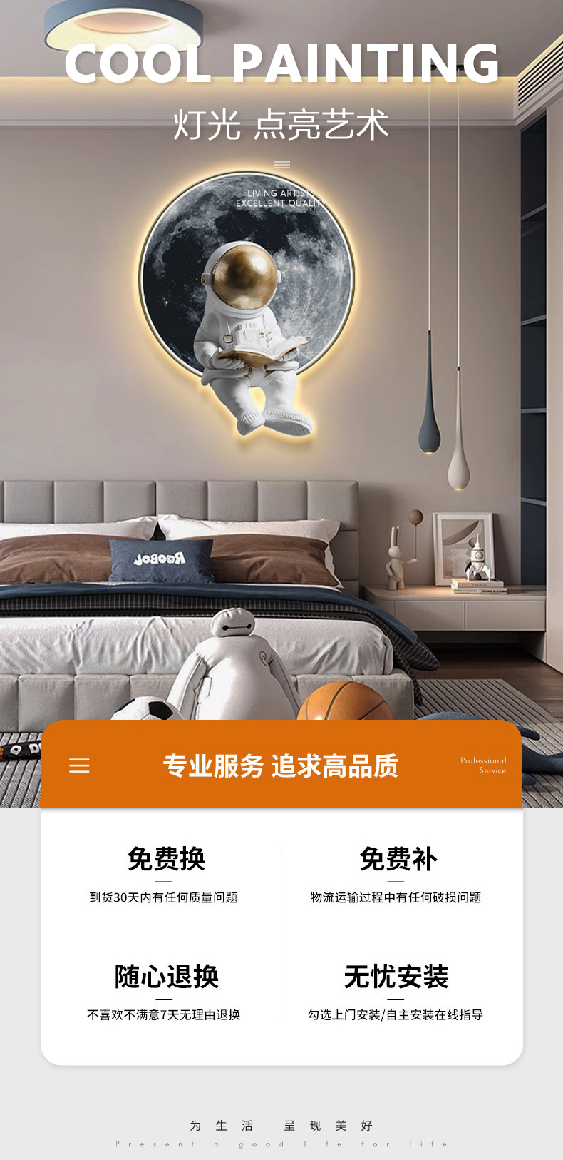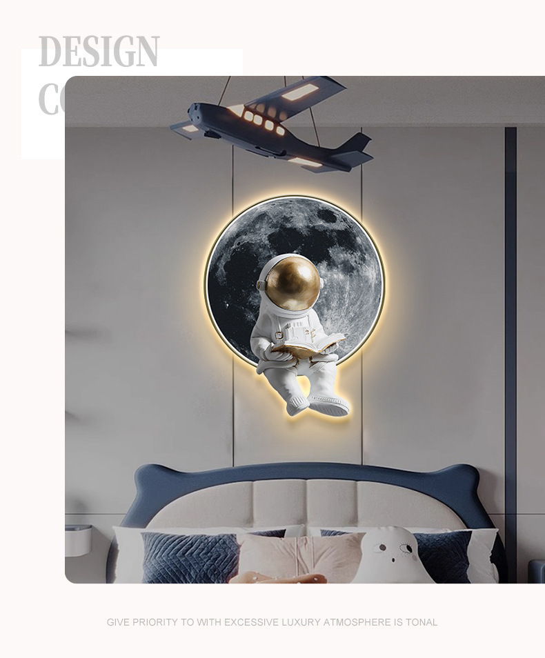 Pasillo decorativo pintura 5d tridimensional colgante Pintura Sala de los niños dormitorio cabecera sala de estar Luna Fondo pared Spaceman mural