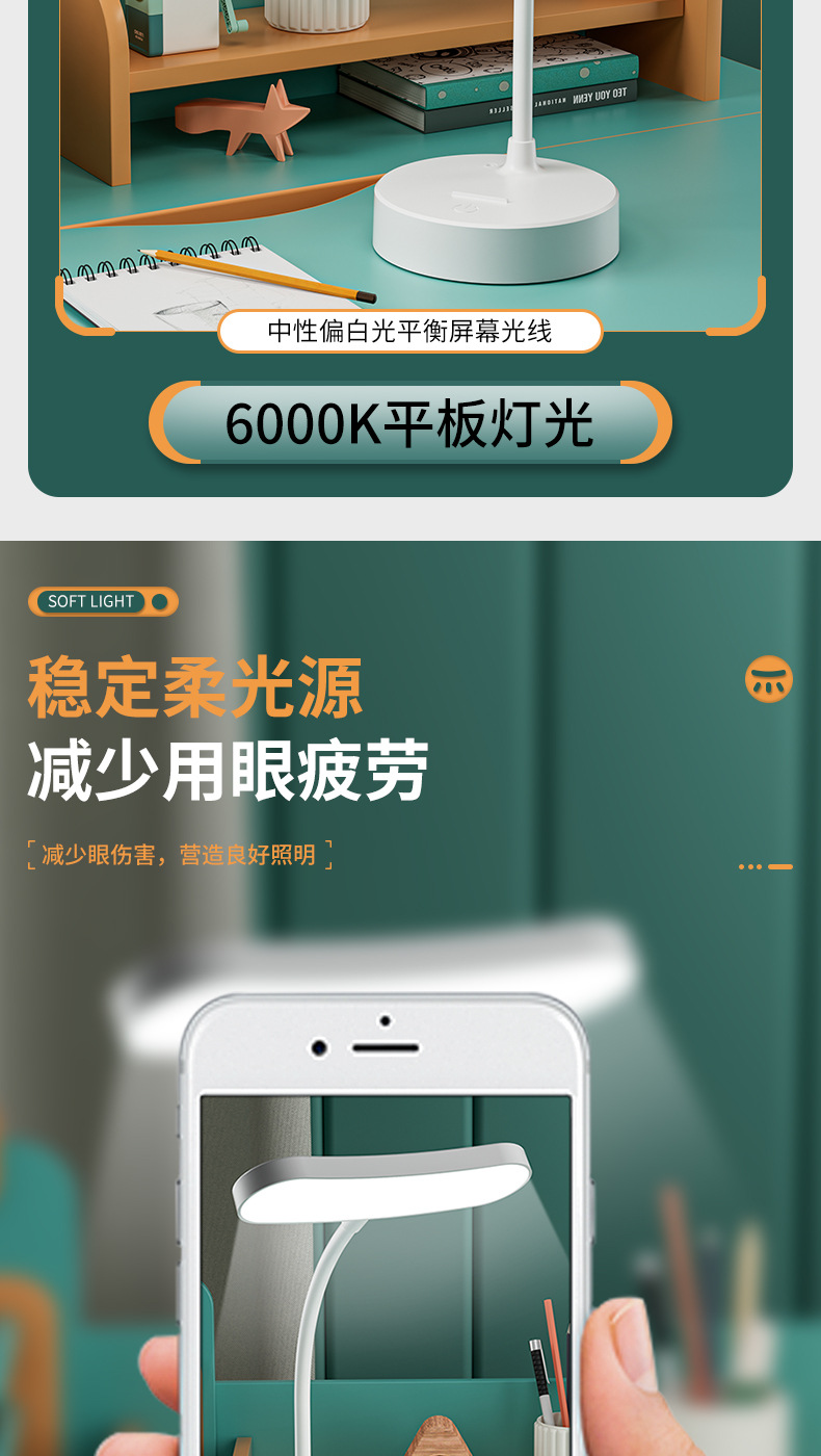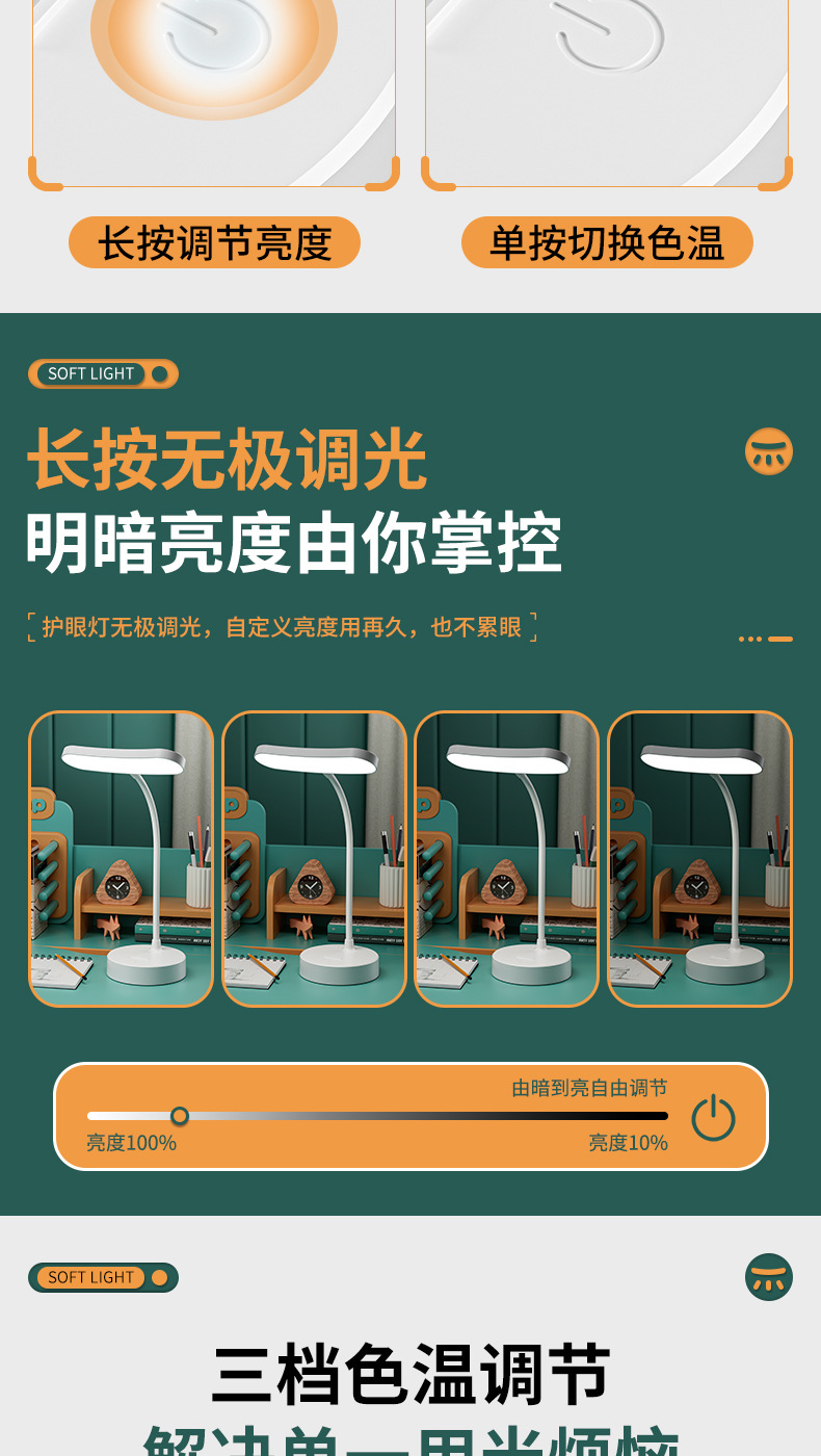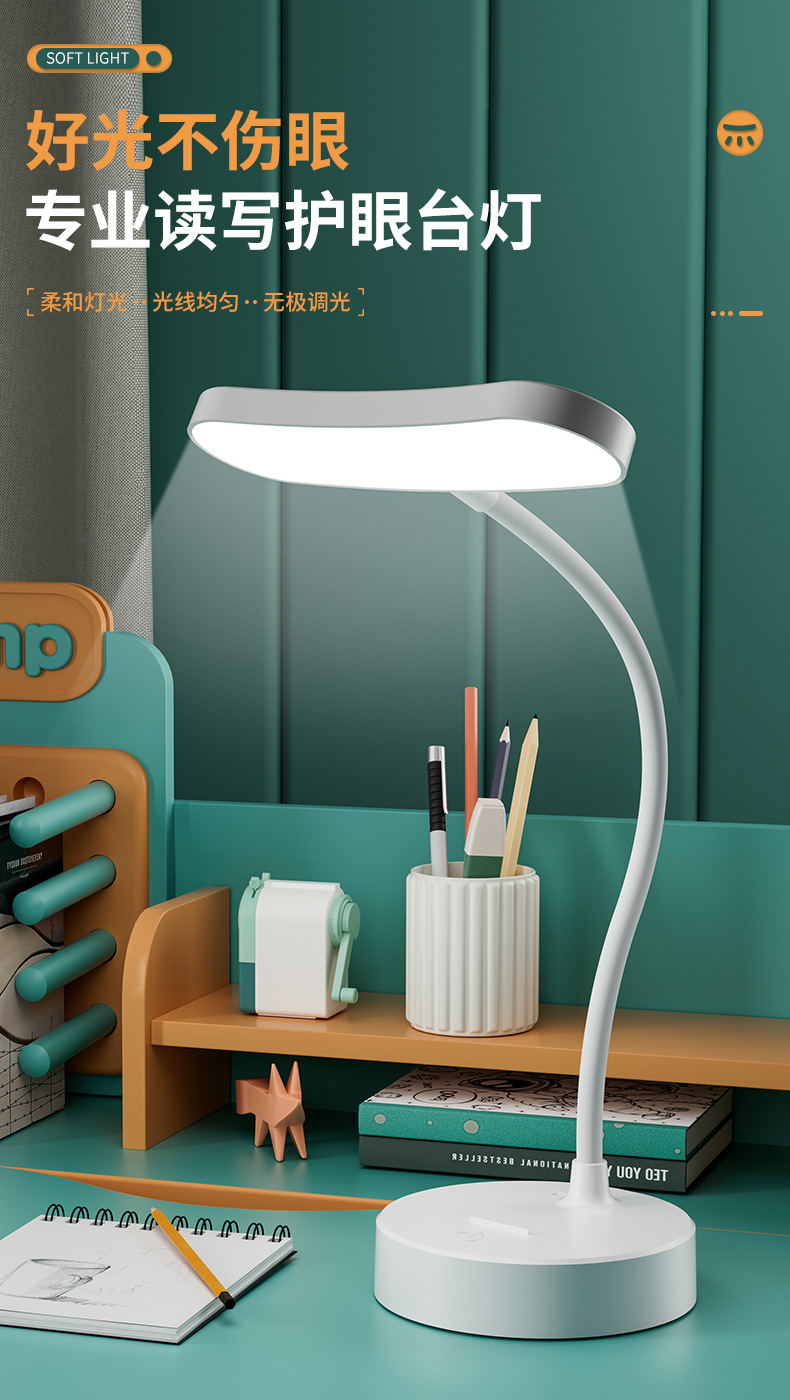 Estudiantes de lectura y aprendizaje lámpara de protección de ojos dormitorio lámpara de escritorio base redonda lámpara de escritorio pequeña lámpara de escritorio USB lámpara de cabecera de oficina inteligente ahorro de energía