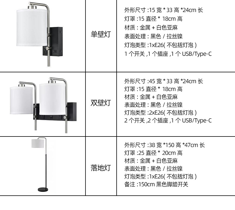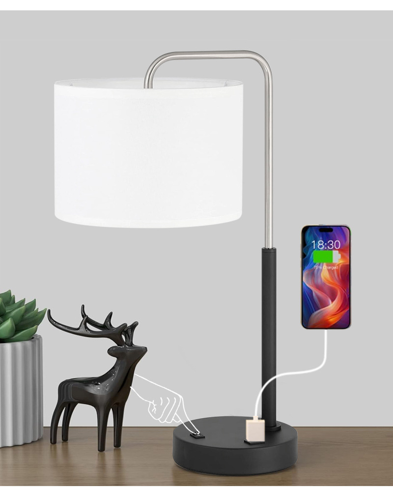 Comercio exterior estilo americano dormitorio cabezal de cama de hotel habitación de hotel lámpara de escritorio de metal USB tela de carga moderna iluminación simple