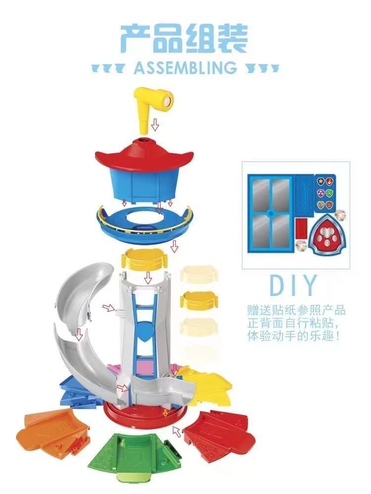Juego de juguetes del equipo Wang Wang, juego completo, perro deformado, equipo de Wangwang, equipo de regreso a la torre de vigilancia de la sede de la patrulla