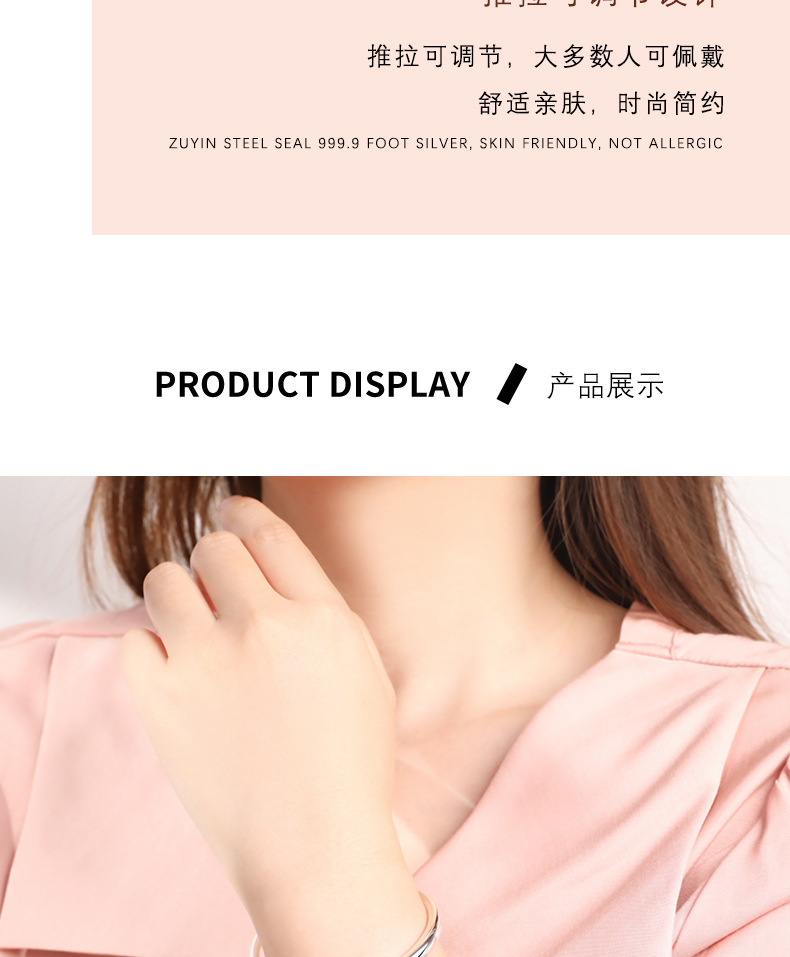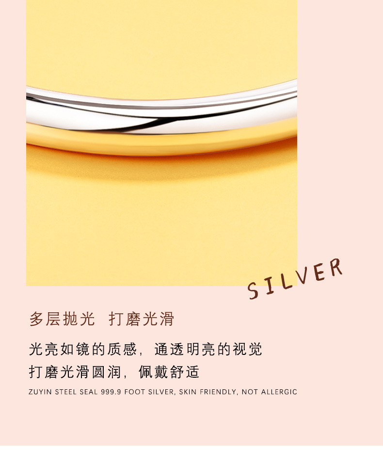 999 pulsera de plata simple mujer brillante estómago sólido empuje pulsera de moda joyería de regalo universal