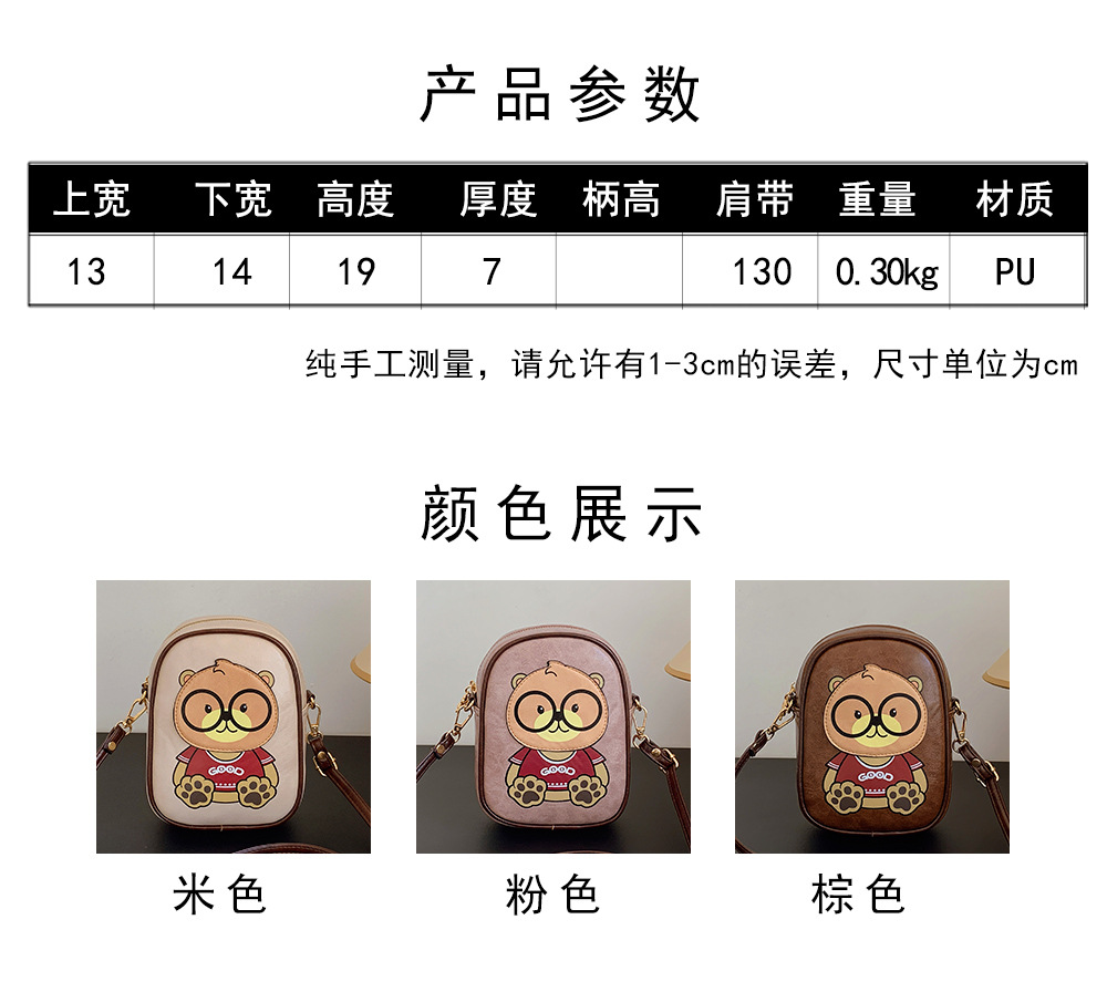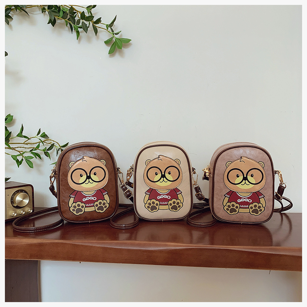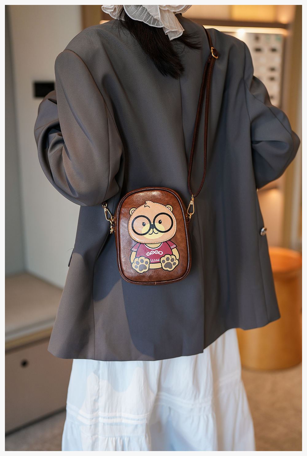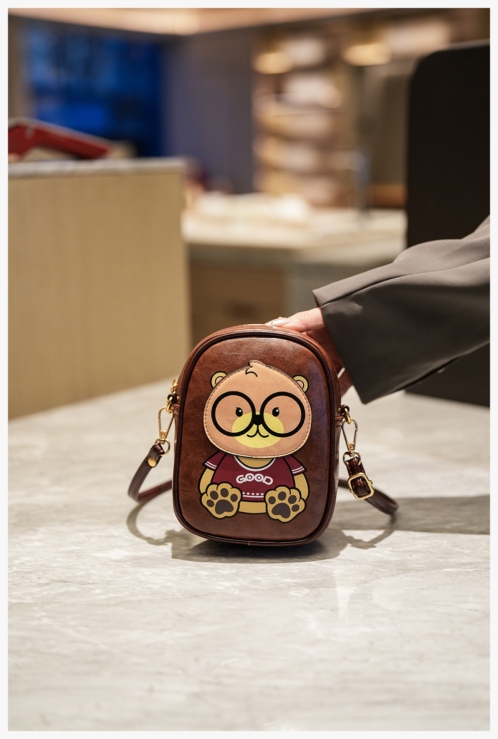 2025 nuevo oso de dibujos animados bolso de teléfono móvil de moda femenina versátil bolso de hombro adorable mini bolso vertical