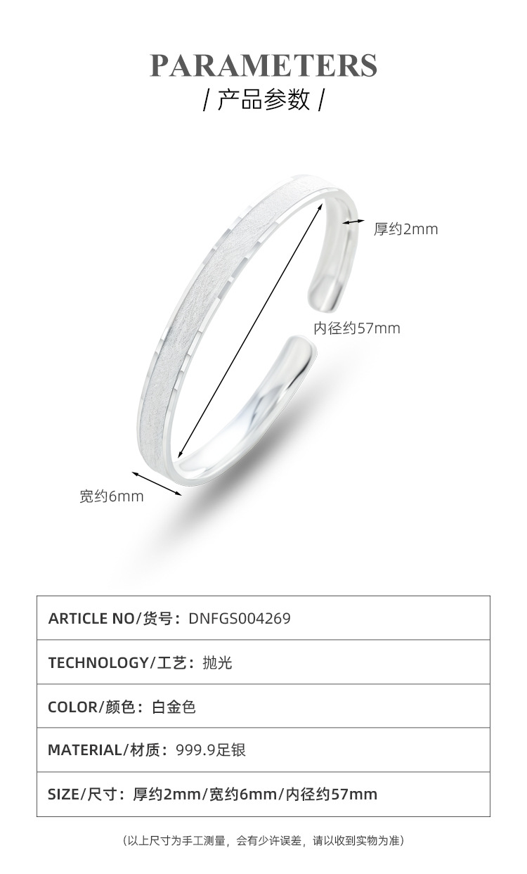 | Colores | Pulsera de plata 9999 esmerilada abierta (aproximadamente 25g ±) |