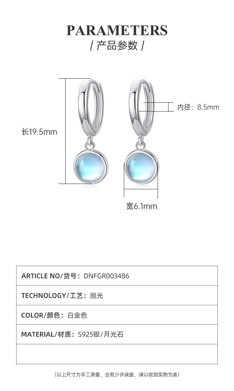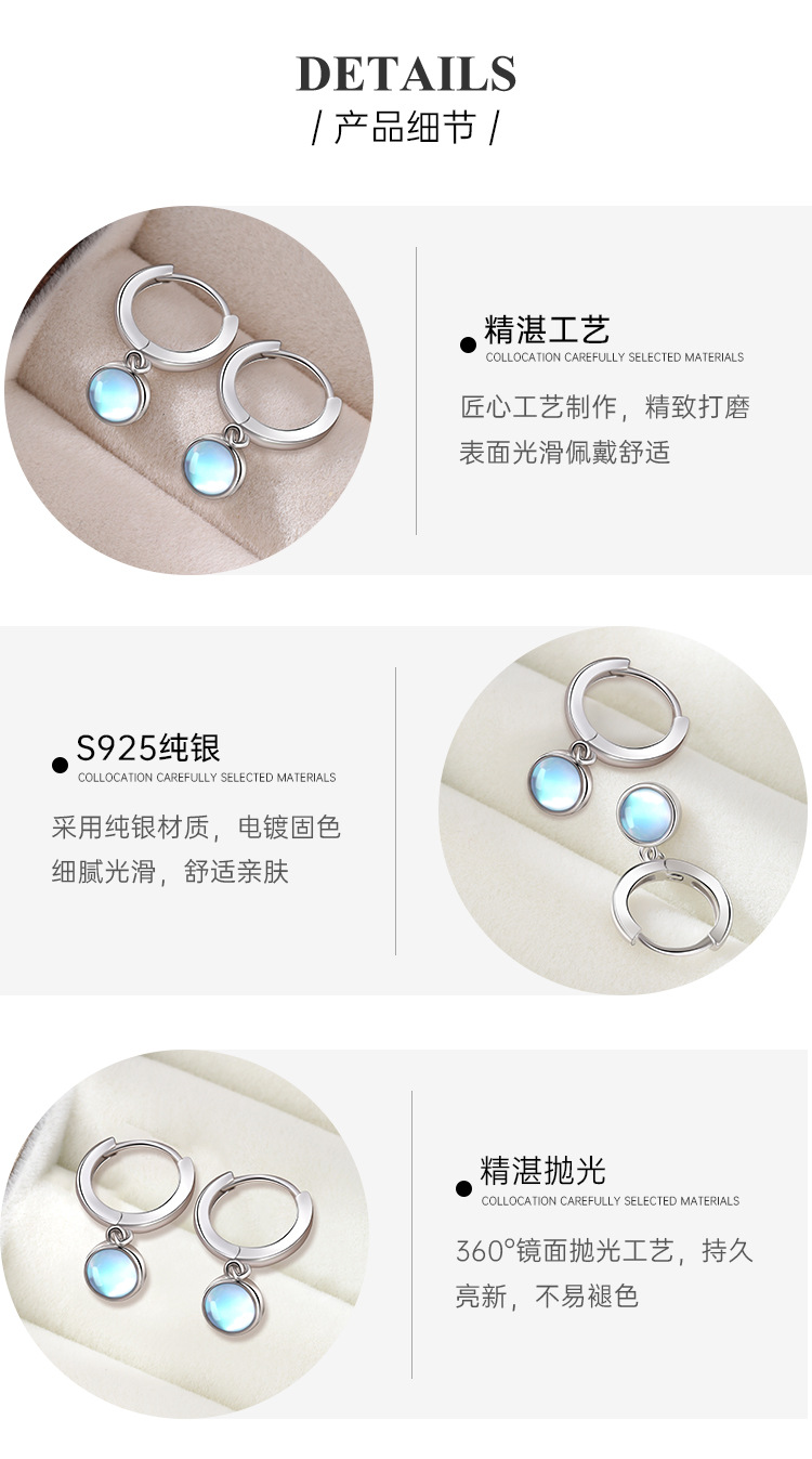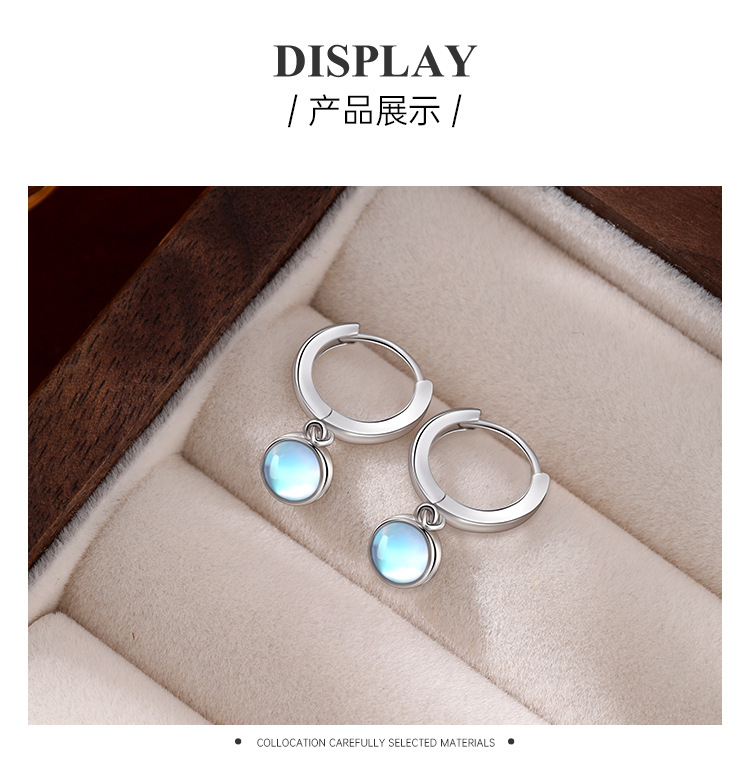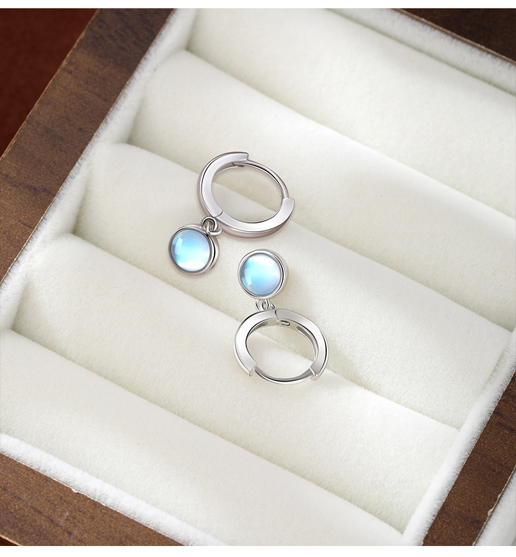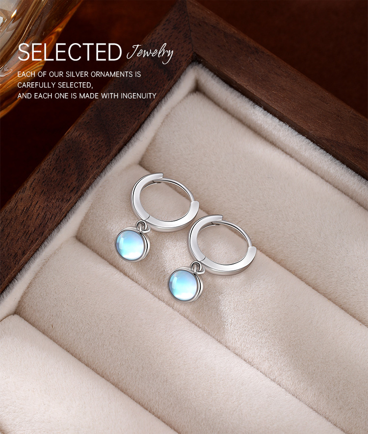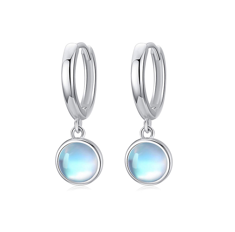 925 aretes de piedra de luna de plata esterlina círculo de alta calidad sencillo perfiles femeninos fríos temperamento europeo y americano pendientes transfronterizos