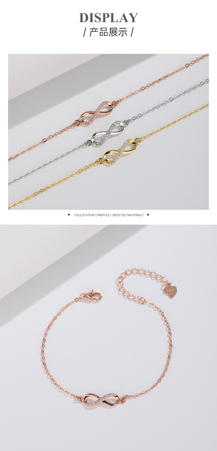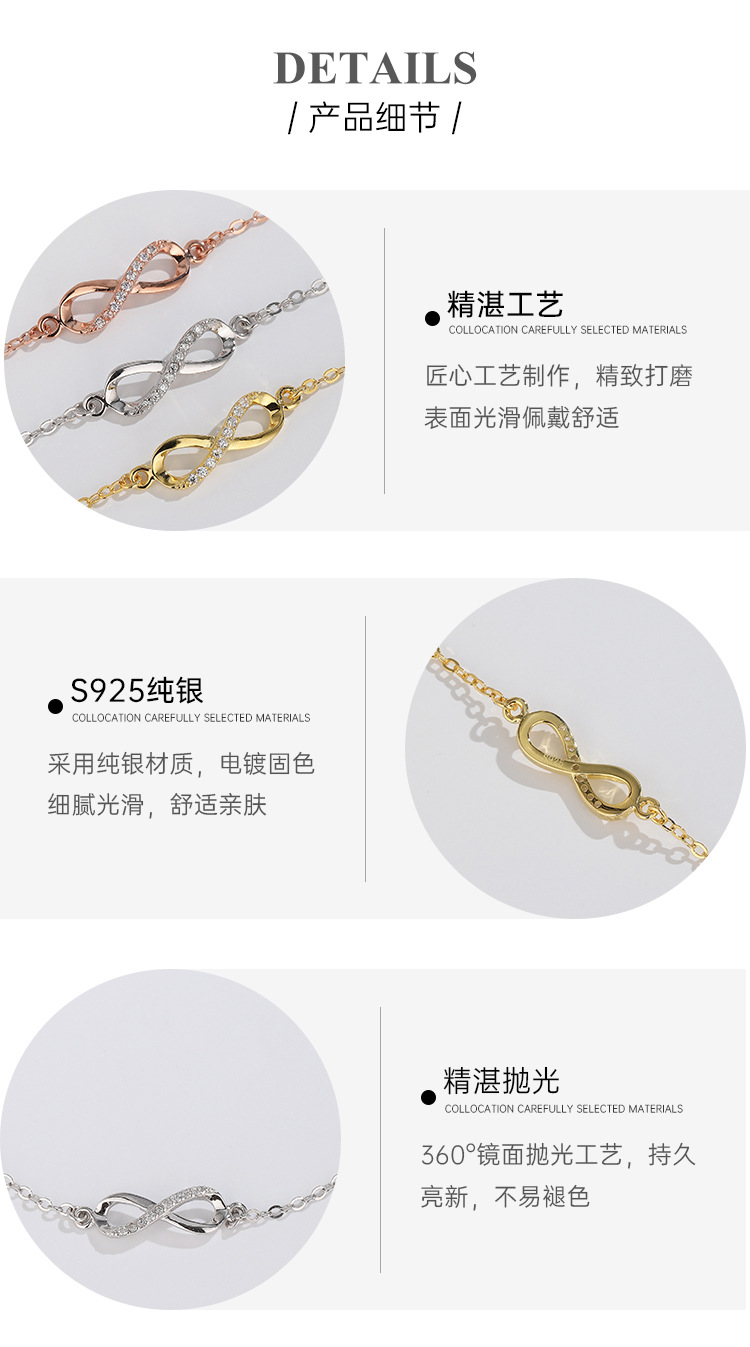 S925 plata esterlina Bucle infinito pulsera de 8 palabras hembra verano fresco dulce transfronterizo moda europea y americana pulsera de novias a juego