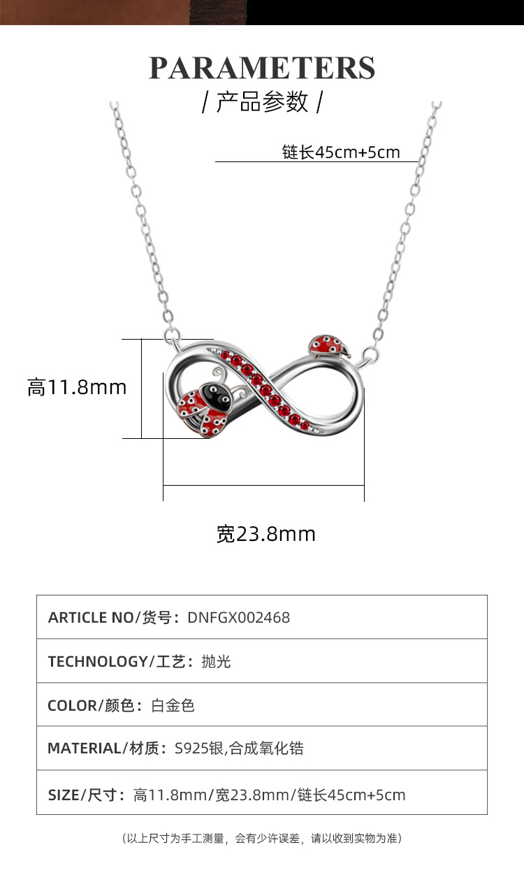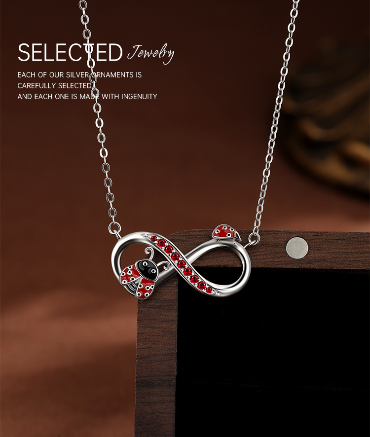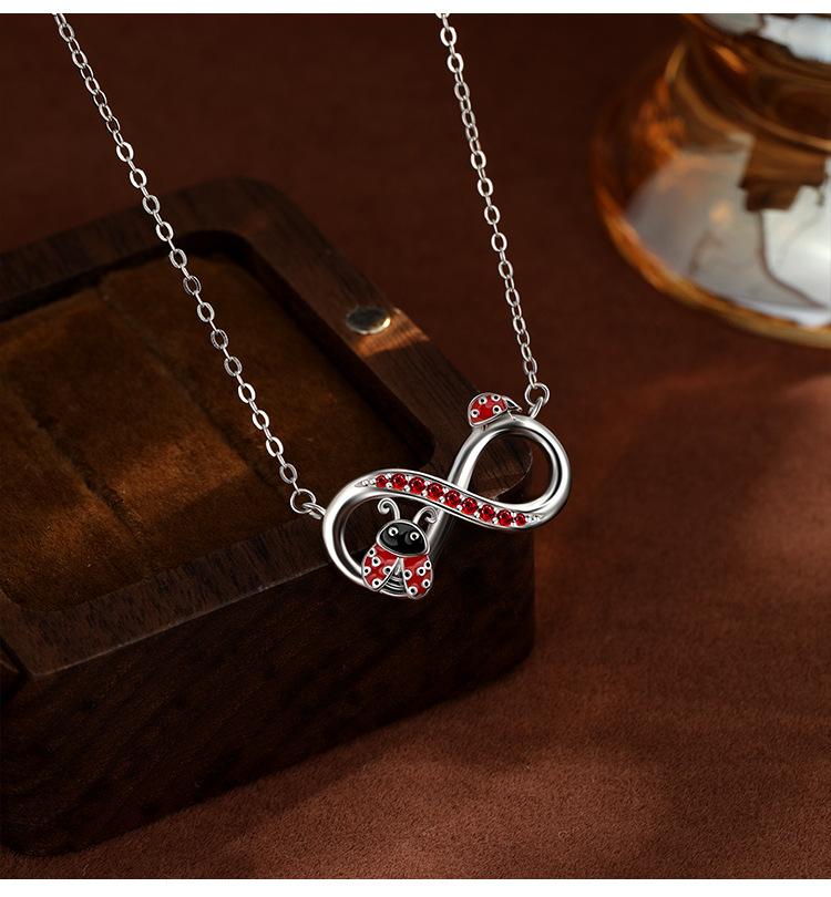 S925 plata de ley, símbolo infinito, collar de mariquita, lujo ligero femenino, nicho, sentido de alta gama, cadena de clavícula de comercio exterior de Amazon europea y americana