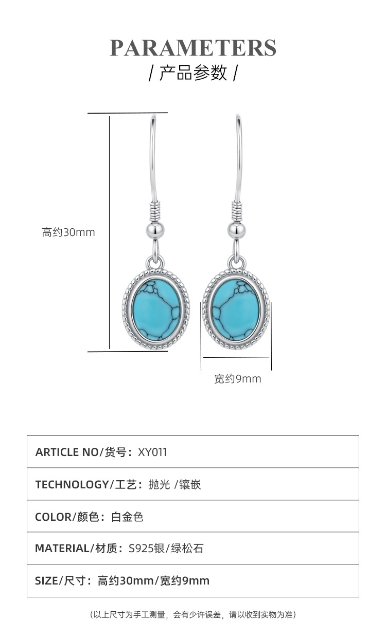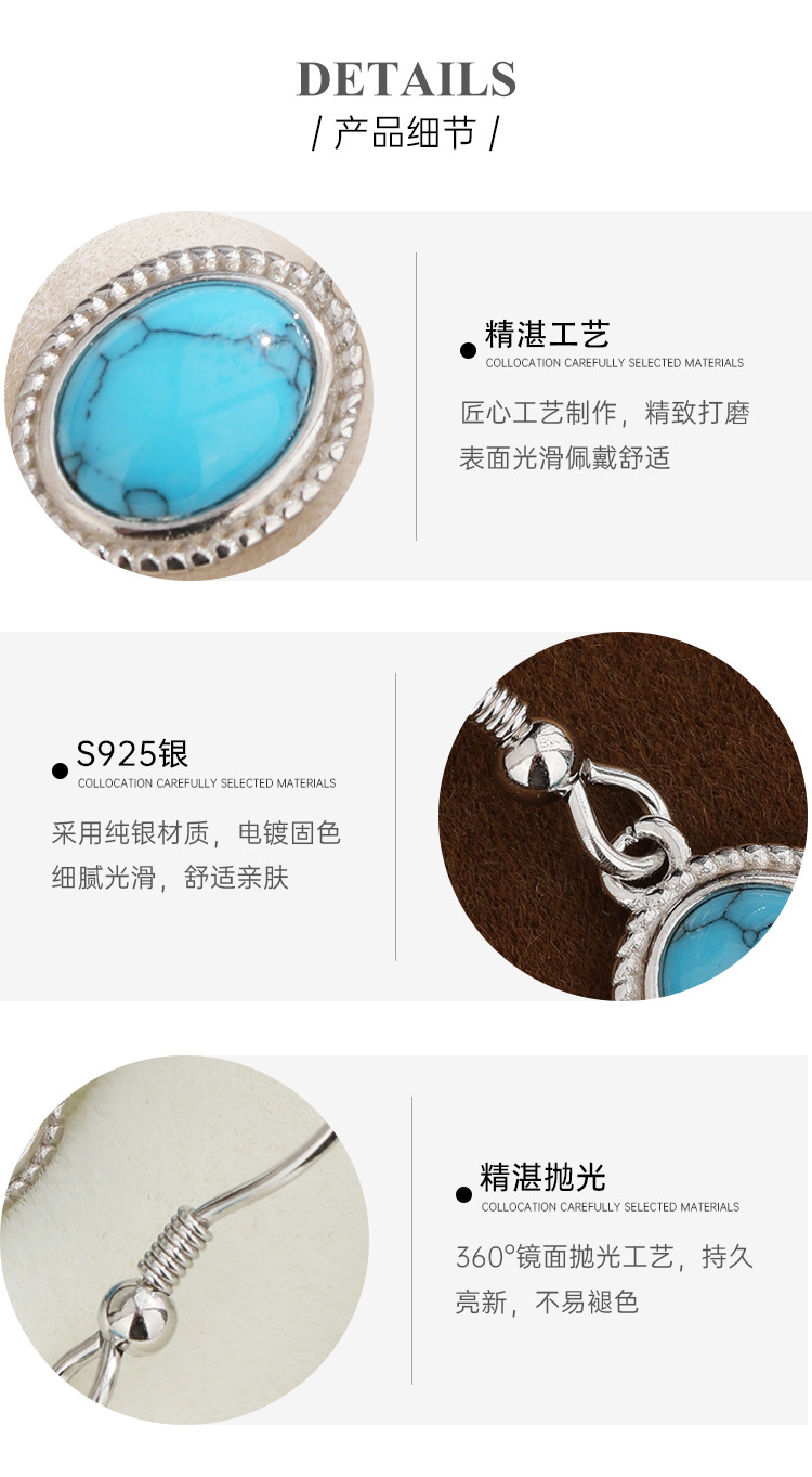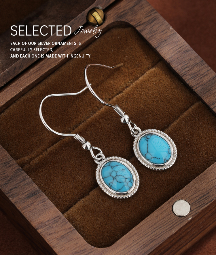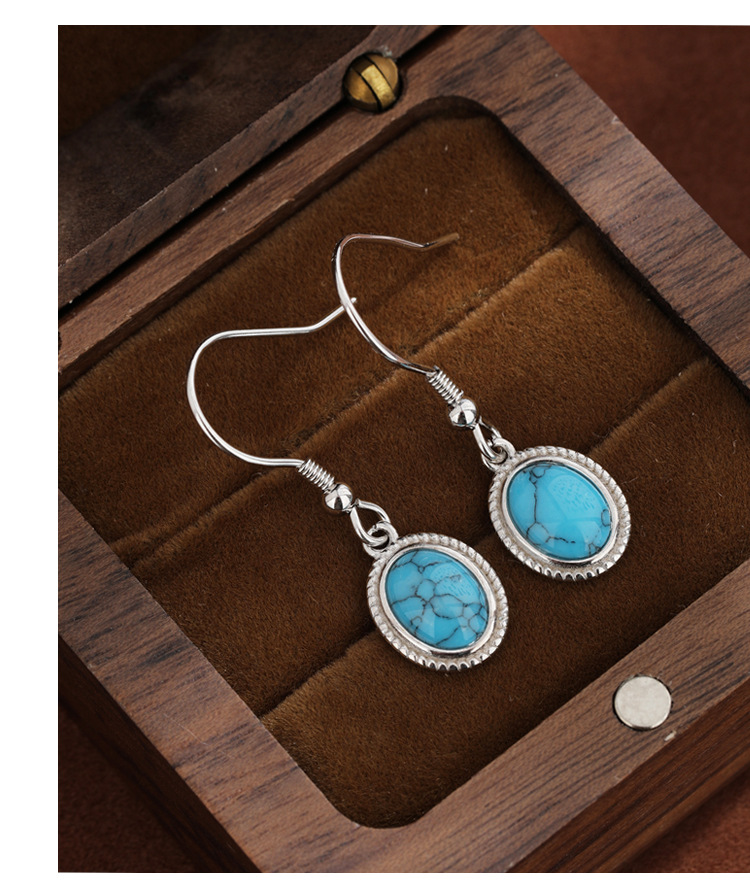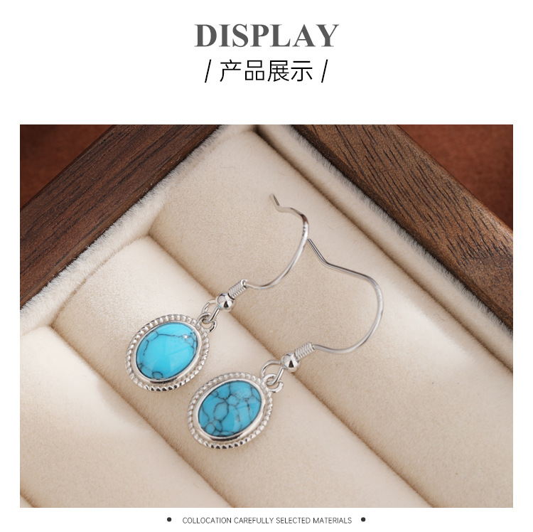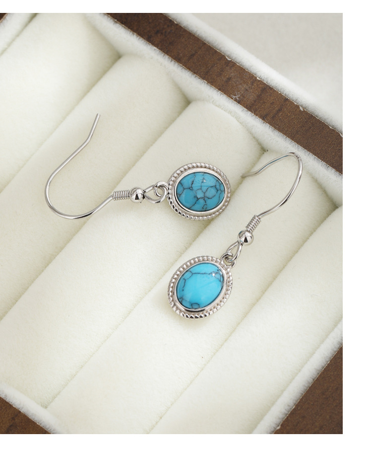 S925 plata esterlina geométrica ovalada pendientes turquesa pendientes retro bohemia europea y americana simple pendientes versátiles