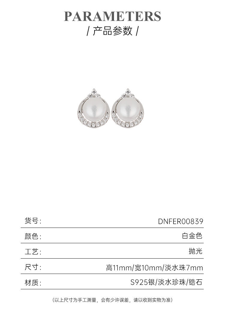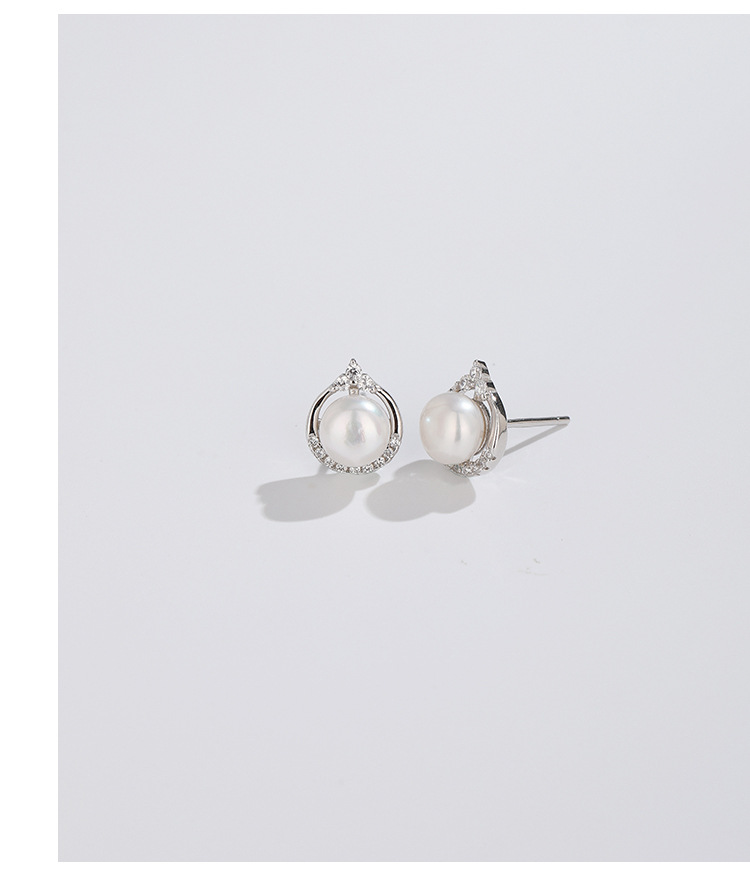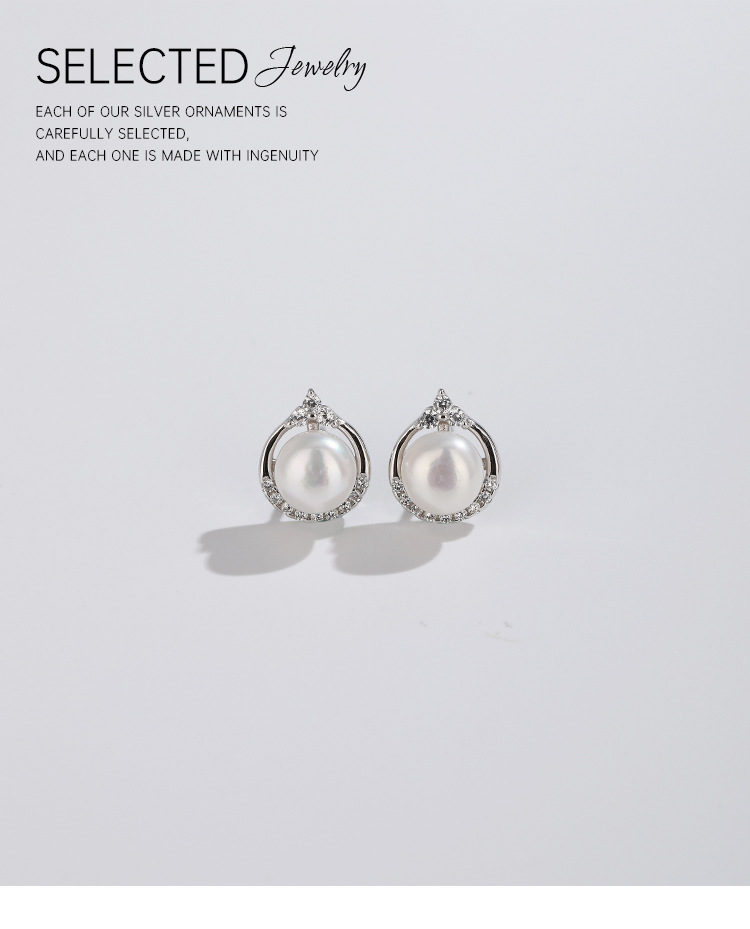 925 pendientes de perlas de agua dulce de plata esterlina luz redonda plana de lujo de alto grado de temperamento de las mujeres pendientes de verano simples personalizados