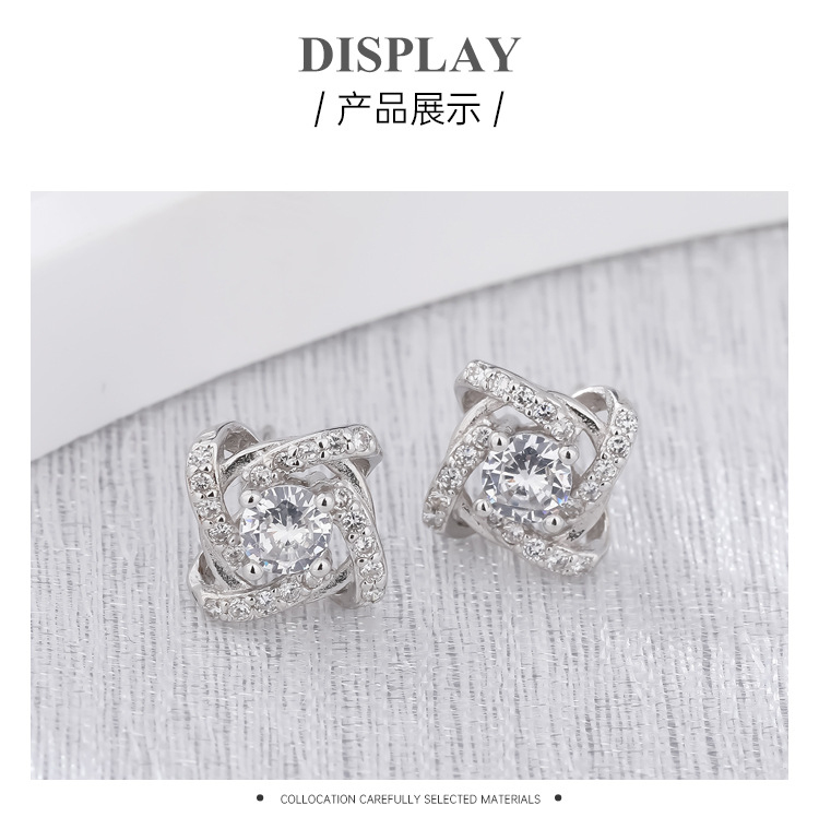 Pendientes de trébol de cuatro hojas de plata s925, lujo ligero, sentido de alta gama, pendientes de todo fósforo de moda, sentido de diseño, pendientes de temperamento simple de nicho