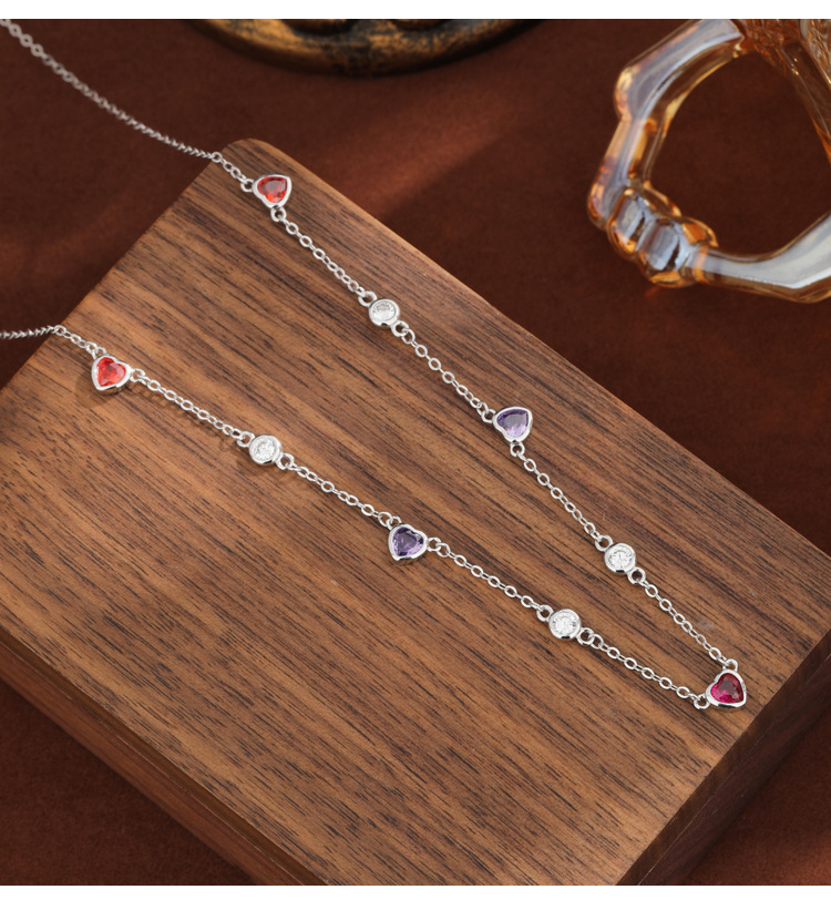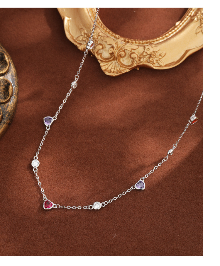 Collar de circón de color de palacio retro S925 plata nueva cadena de clavícula de moda temperamento femenino largo personalidad collar neto de red