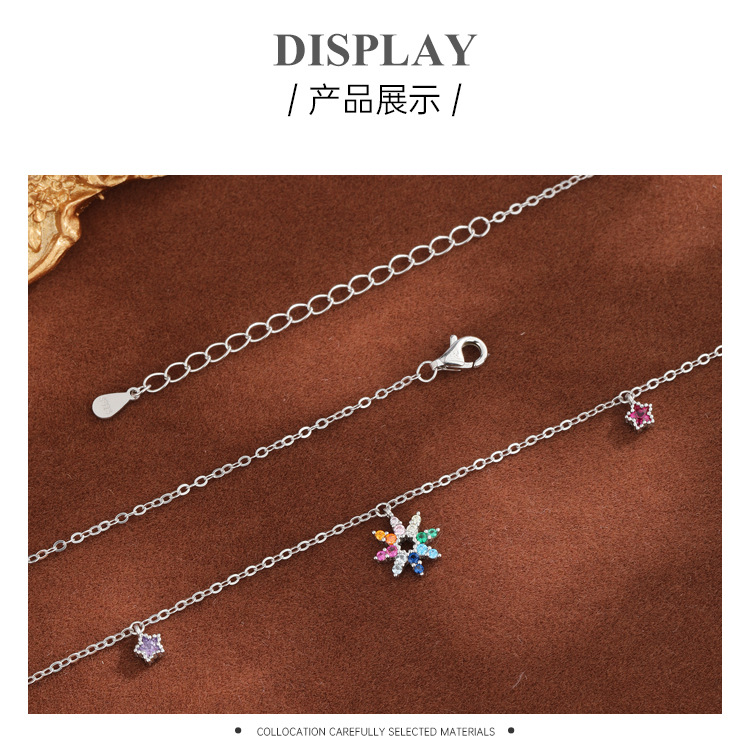 Collar de circón de color gypsophila de plata de ley 925 estrella femenina de cinco puntas brillante de estilo frío cadena de clavícula simple y versátil