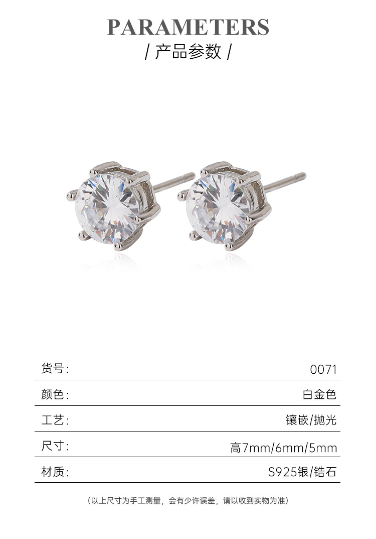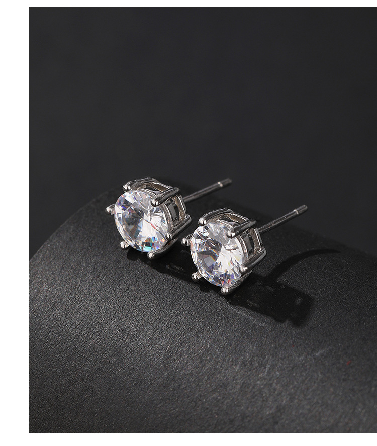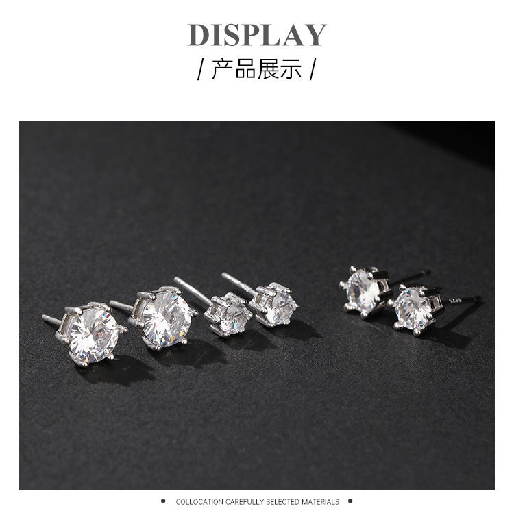 S925 plata esterlina seis-garra Stud pendientes simple europeo y americano hip hop circón Super Flash pendientes hombres y mujeres populares de alto grado pendientes