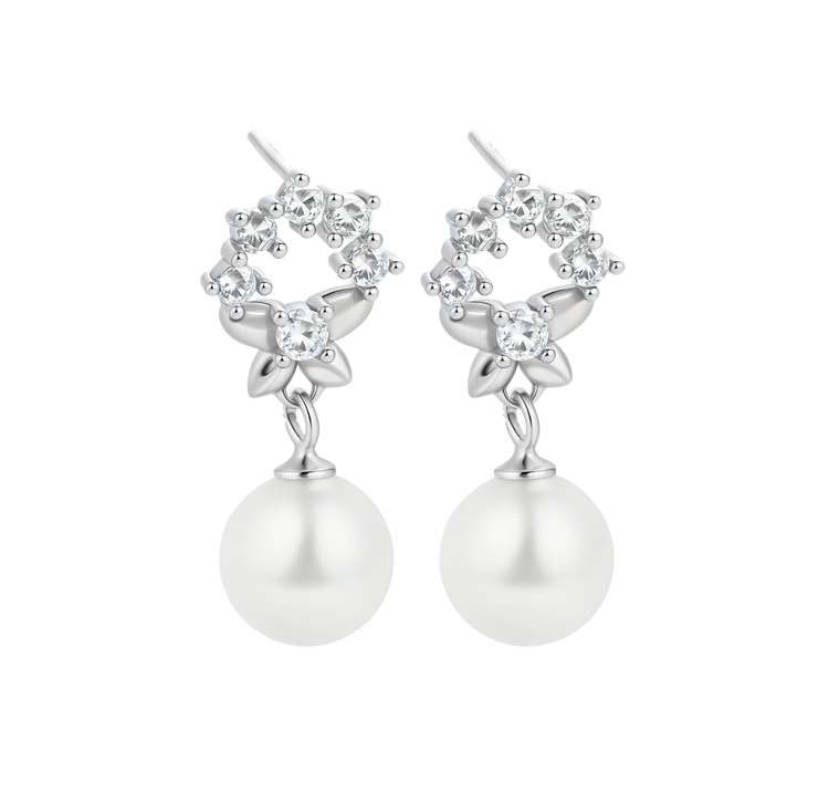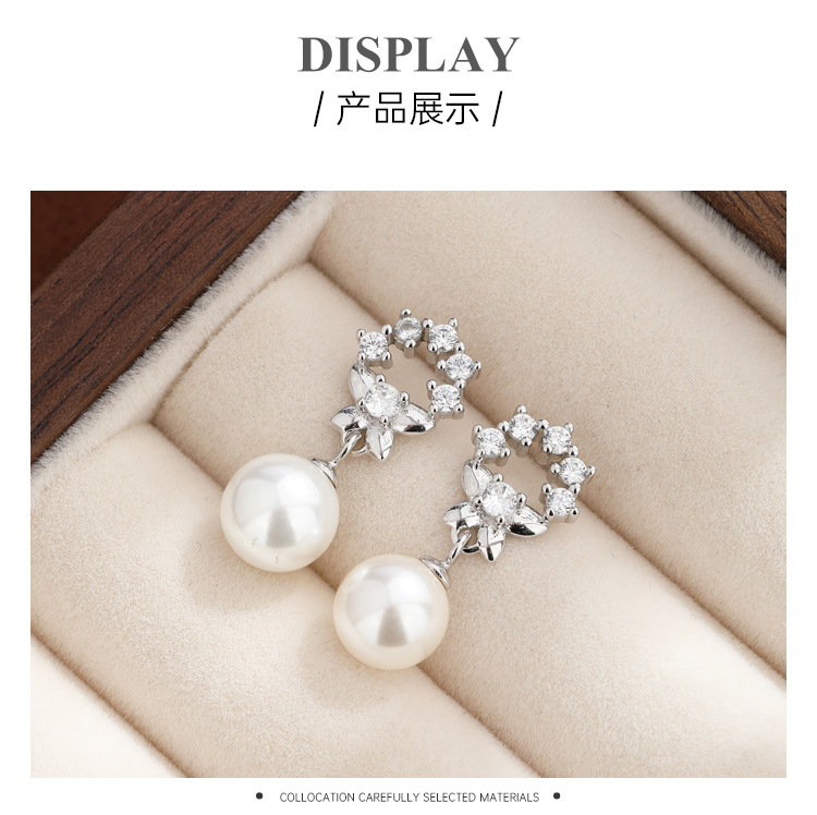 925 plata esterlina temperamento perlas perlas de verano alta sensación de moda flor de piedra arco pendientes para mujeres